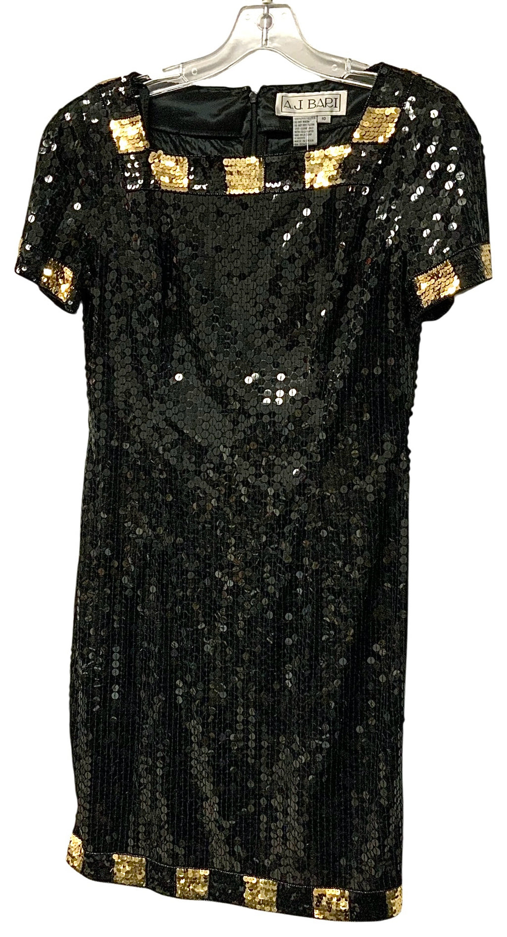 A.J. BARI Vintage Black/Gold Sequin S/S Dress