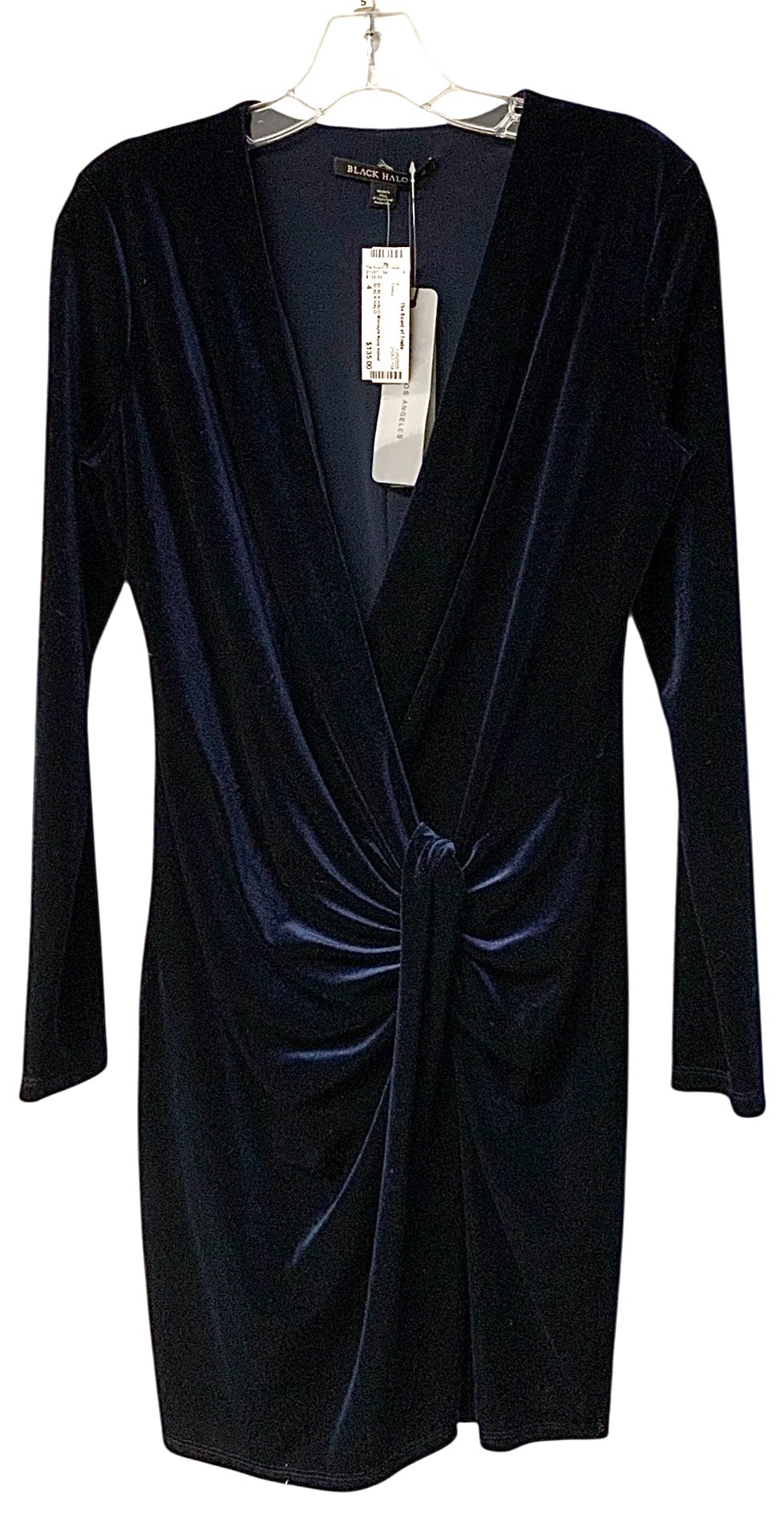 BLACK HALO Midnight Navy Velvet Twist Front L/S Dress