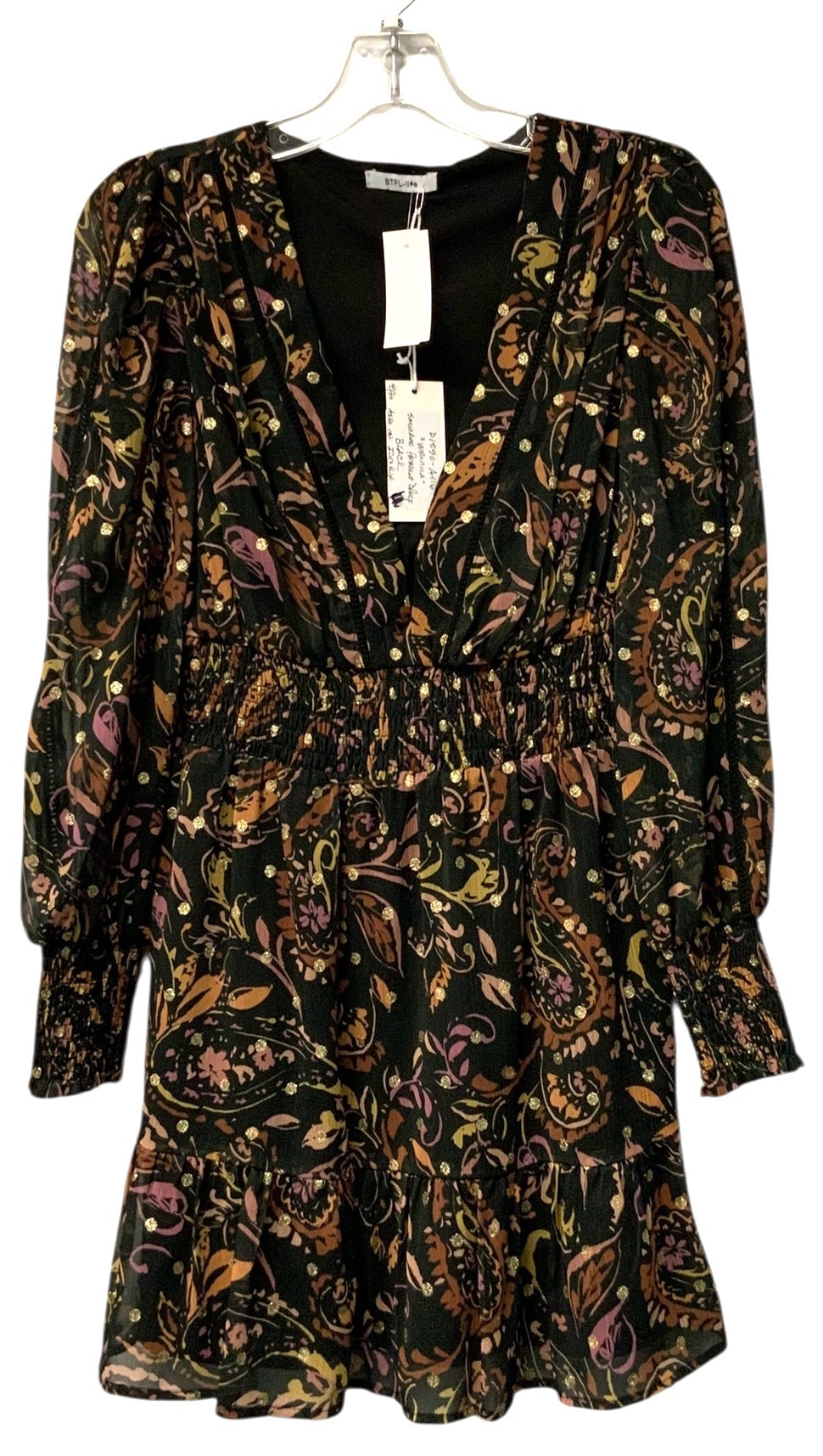 BTFL-LIFE Black/Rust/Metallic Paisley V-Neck Smocked Waist Dress