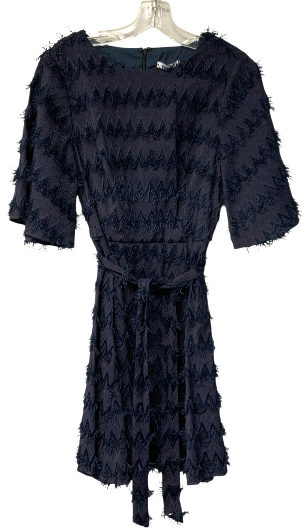 Navy Fringed Chevron Stripe Mid Length Sleeve Dress
