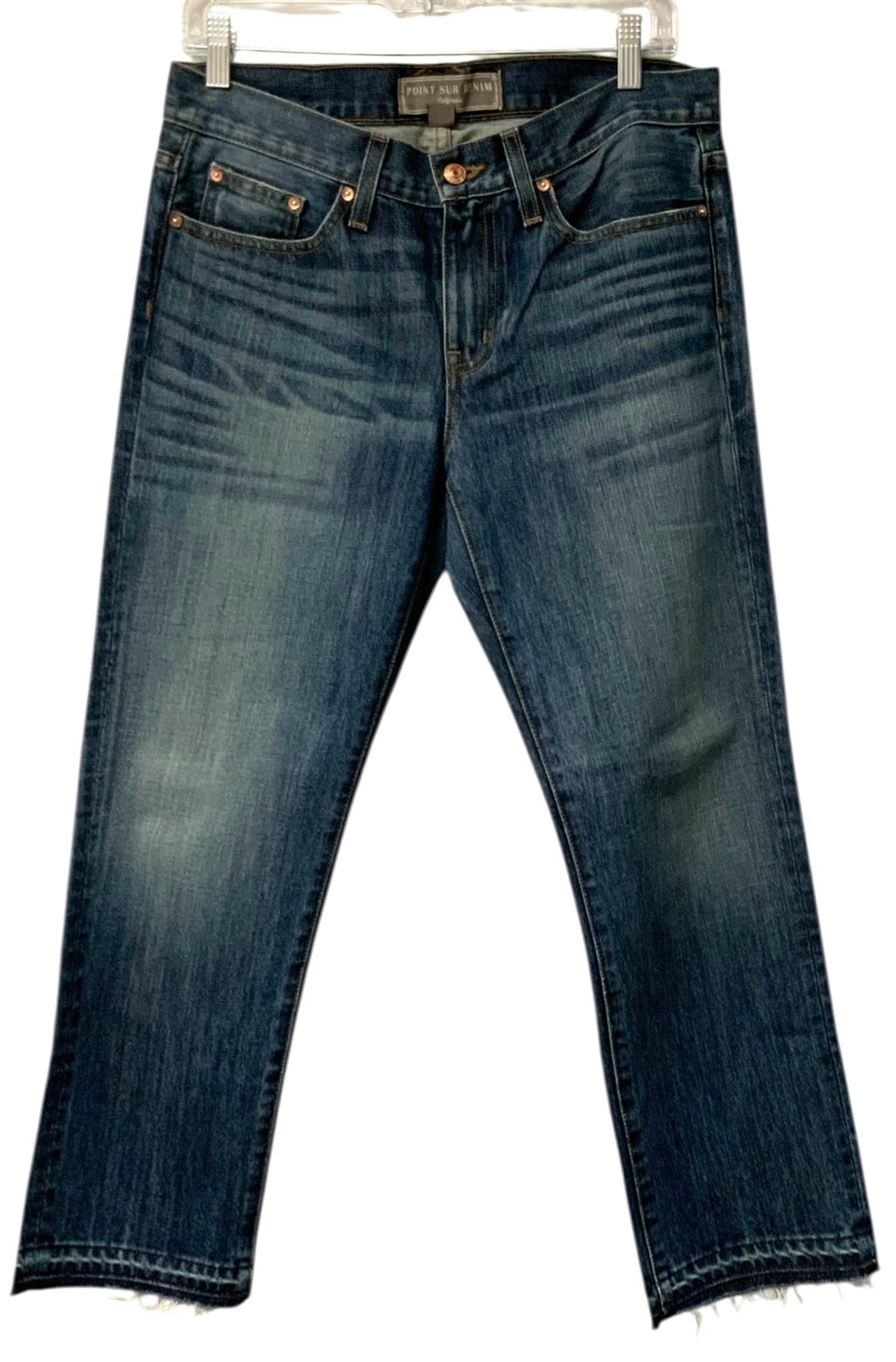 POINT SUR DENIM Lt Wash Frayed Hem Straight Leg Jeans