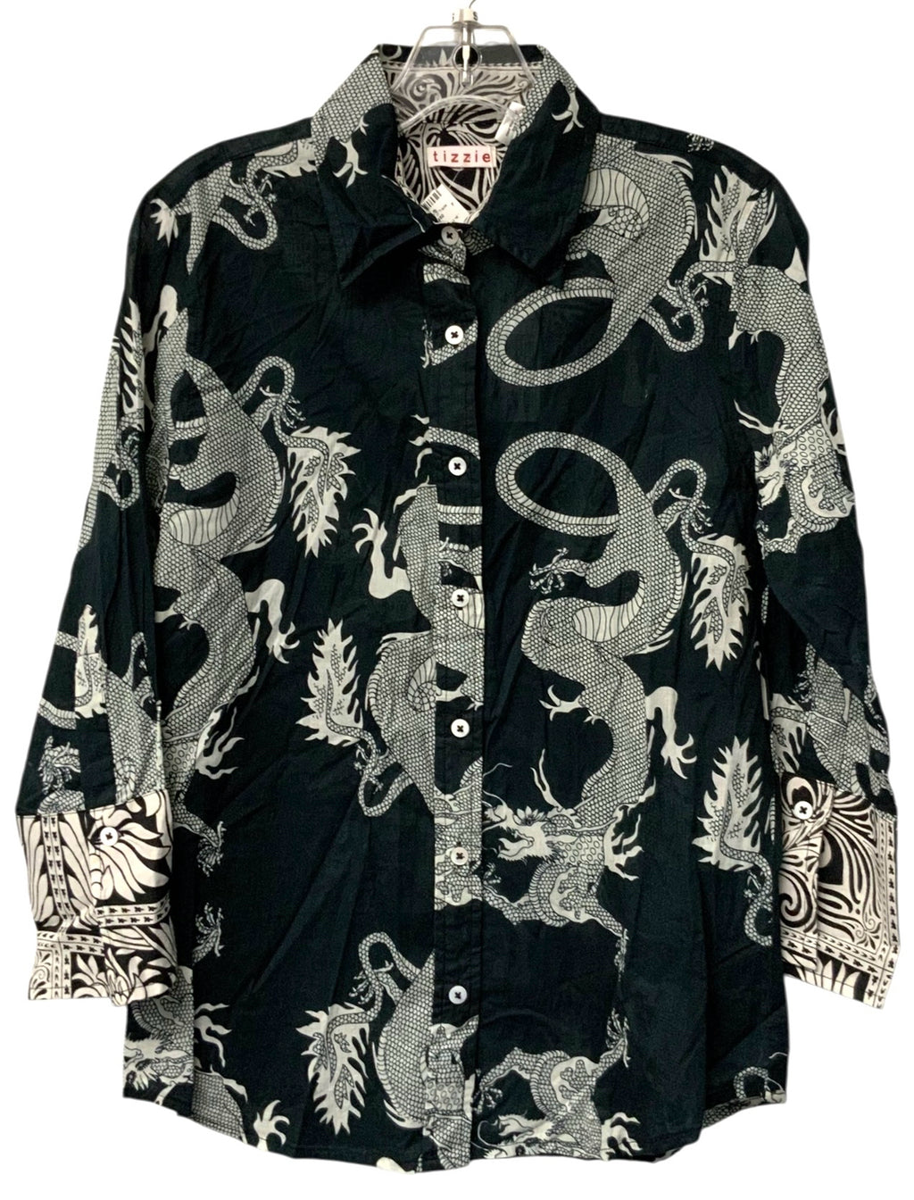 TIZZIE Black/White Dragon Print L/S B/D Top