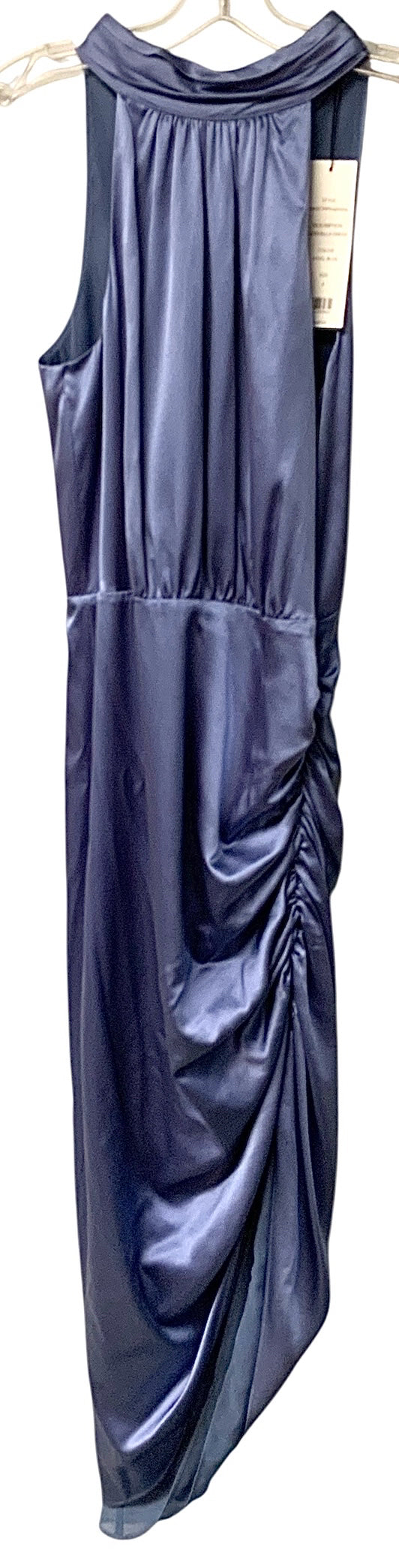 VERONICA BEARD Steel Blue Silk Halter Ruched Side Slit Gabriella Dress