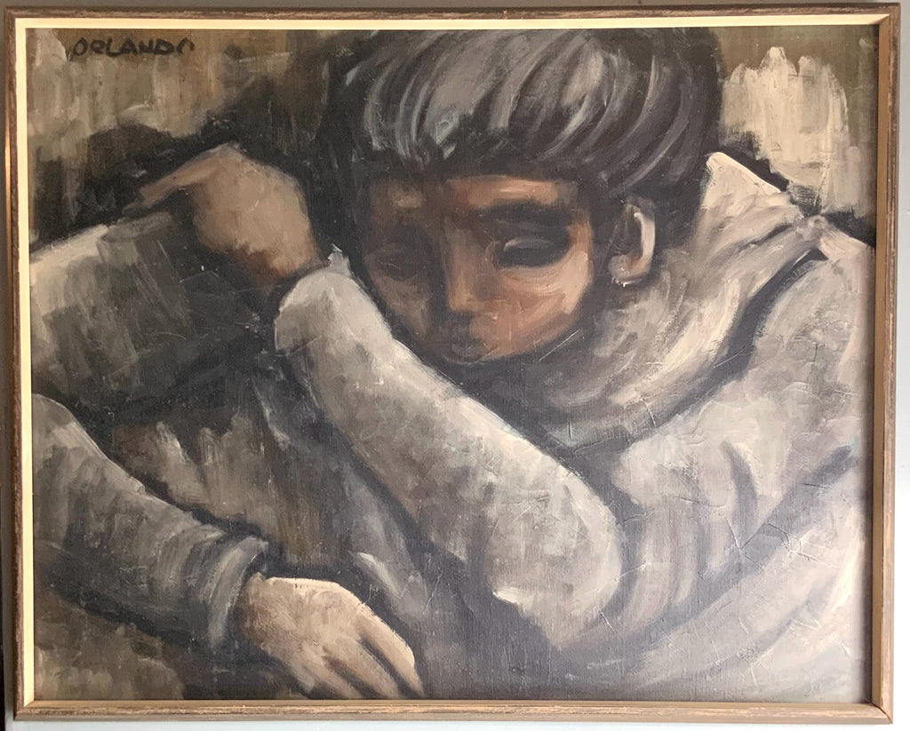 Mid Century Abstract Acrylic on Canvas of Boy
