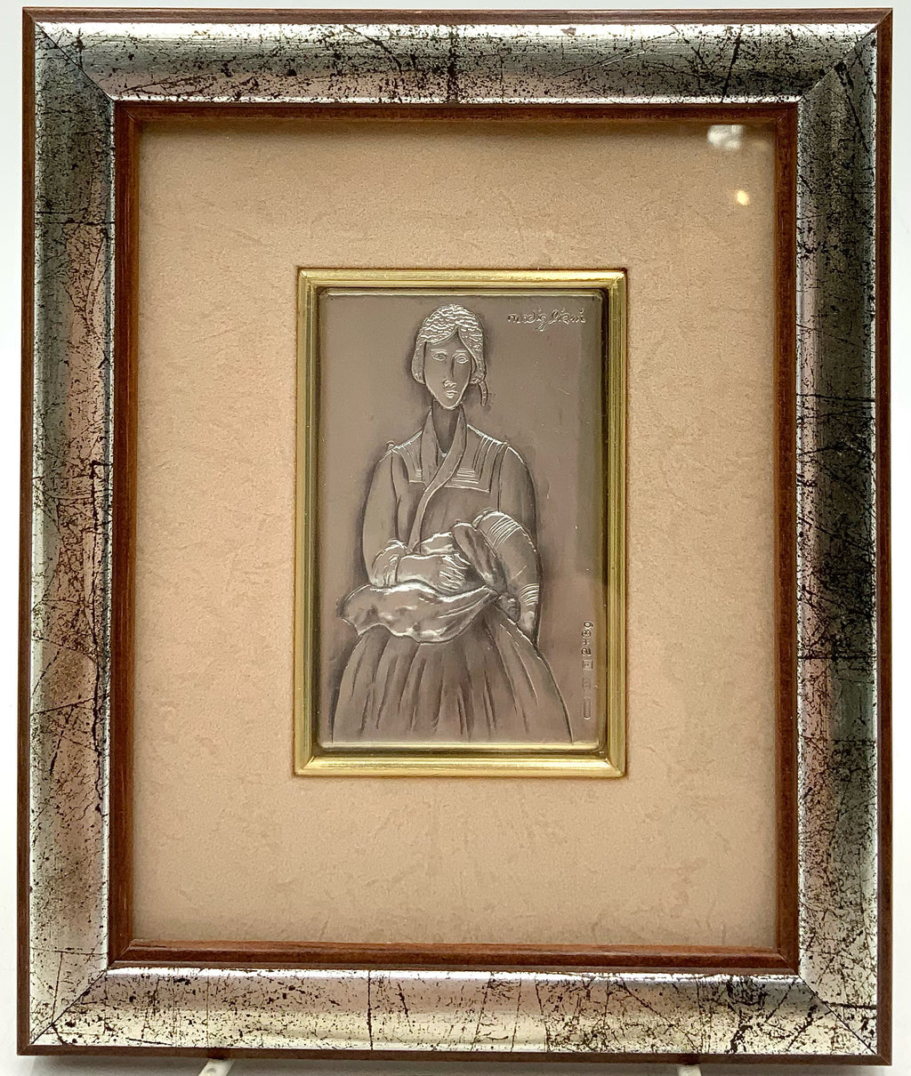 Engraving, Silverplate, Modigliani, "Gypsy Woman" Vintage 6"wx7"h