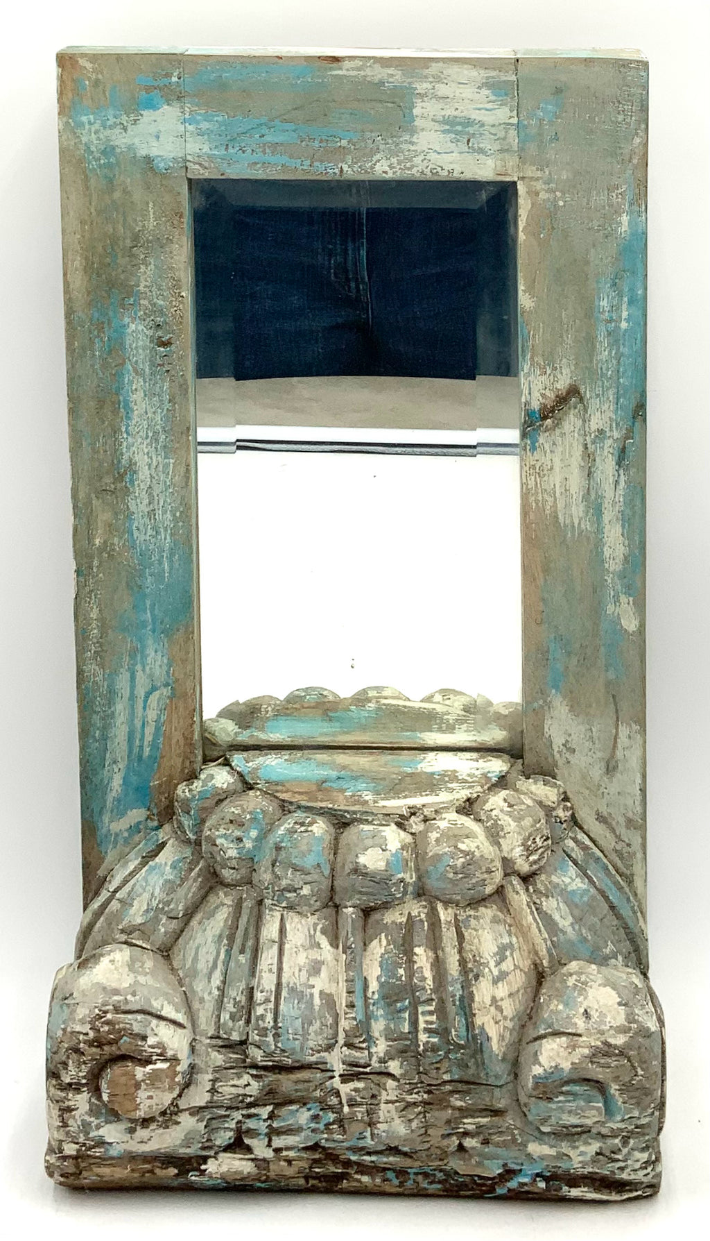 Mirror, Distressed Blue Finish, Carved Wood, 10"wx18"h