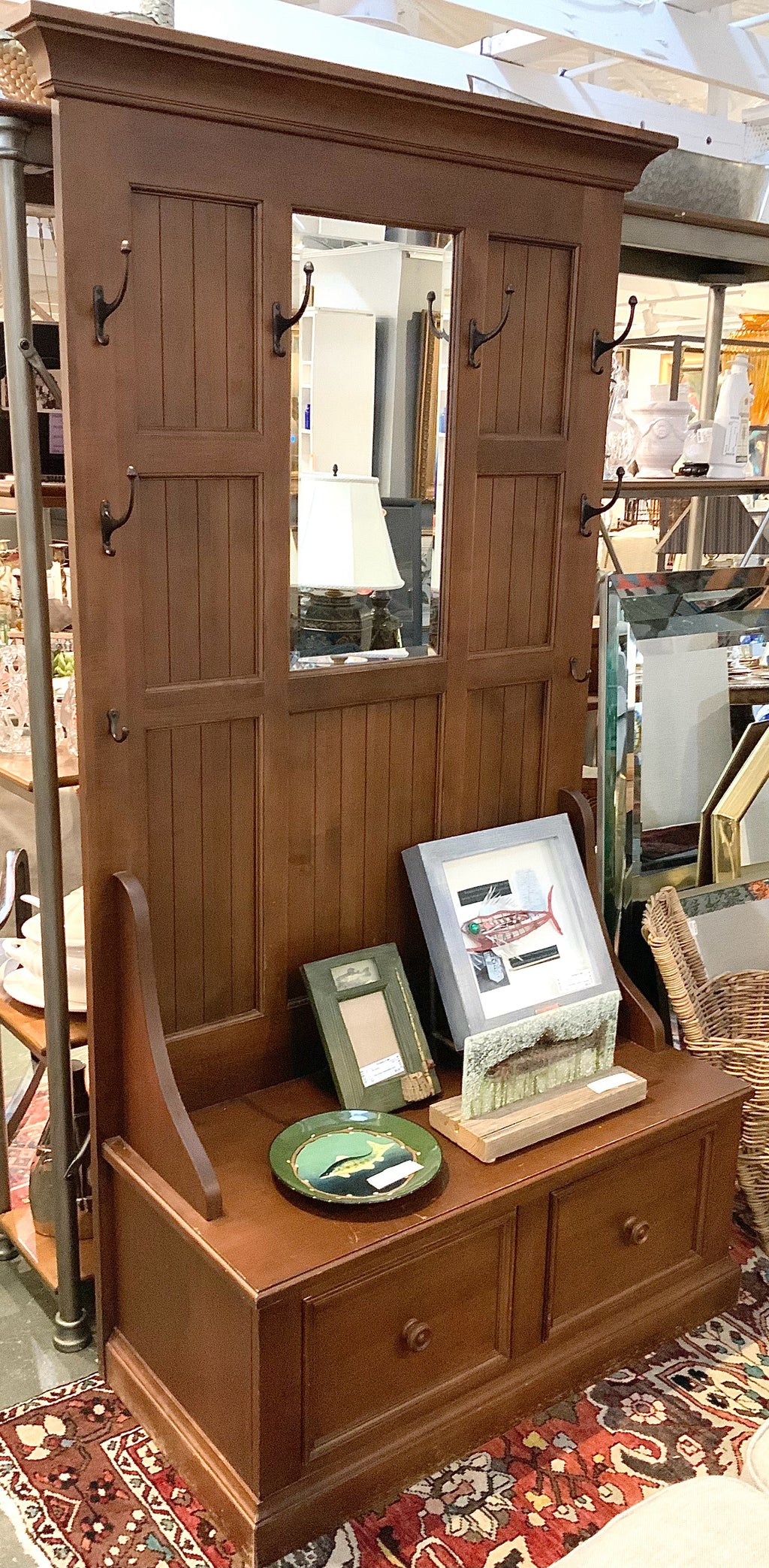 Hall Tree, Logan, Two Drawers, Hooks, Wood, 39"wx19"dx79"h