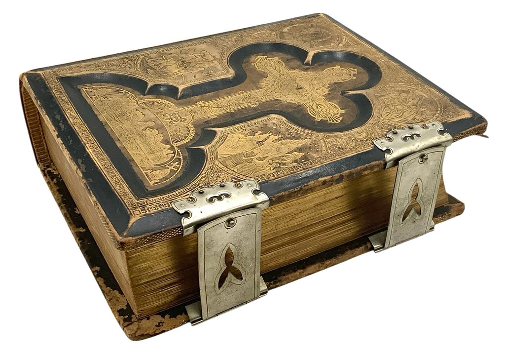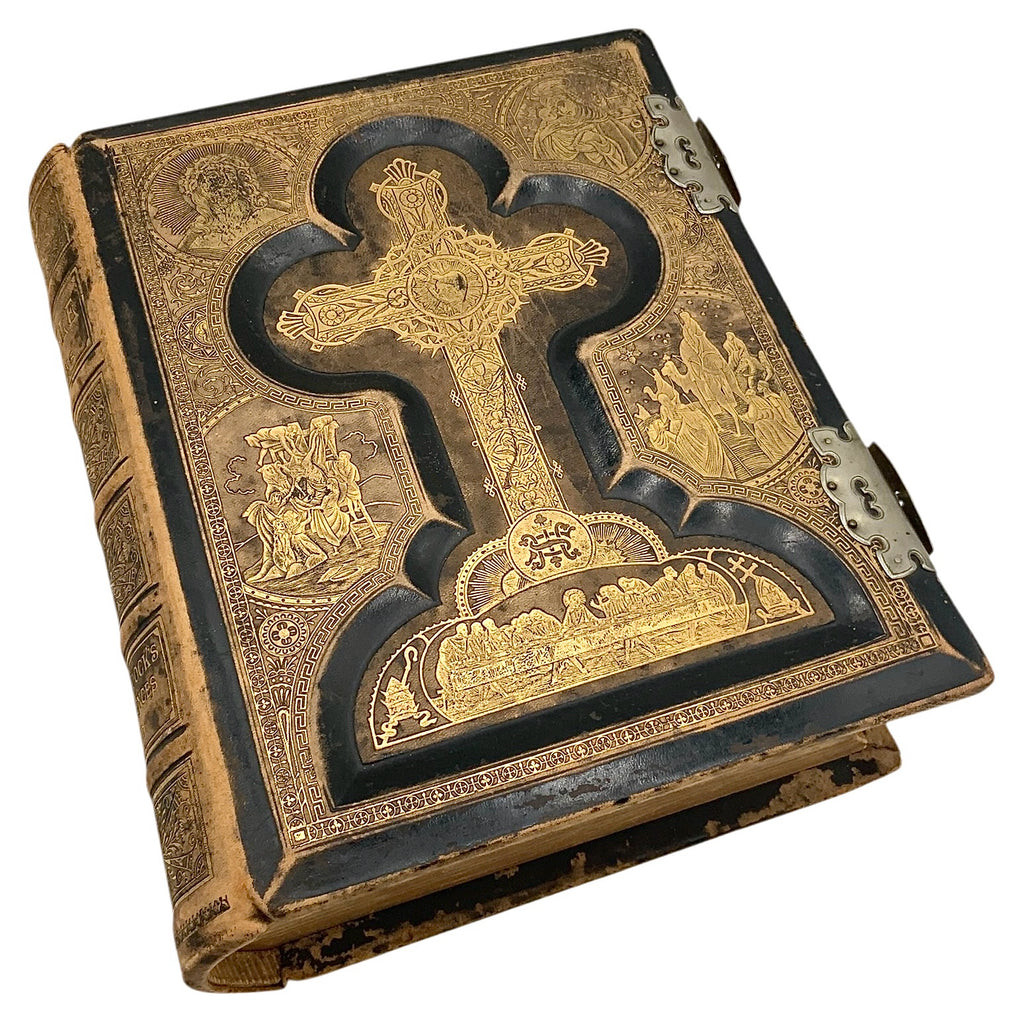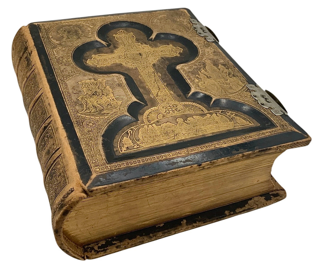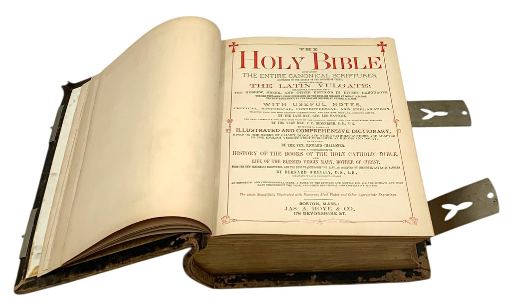 Catholic Family Bible, Antique, Douay & Reims, 1883, Leather, Metal Closures, 10"wx12.5"hx4.5"h