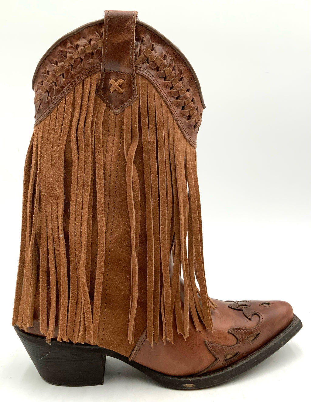DINGO Brown Leather & Suede Fringed Western Snip Toe Boots 6. Style:DI7445.