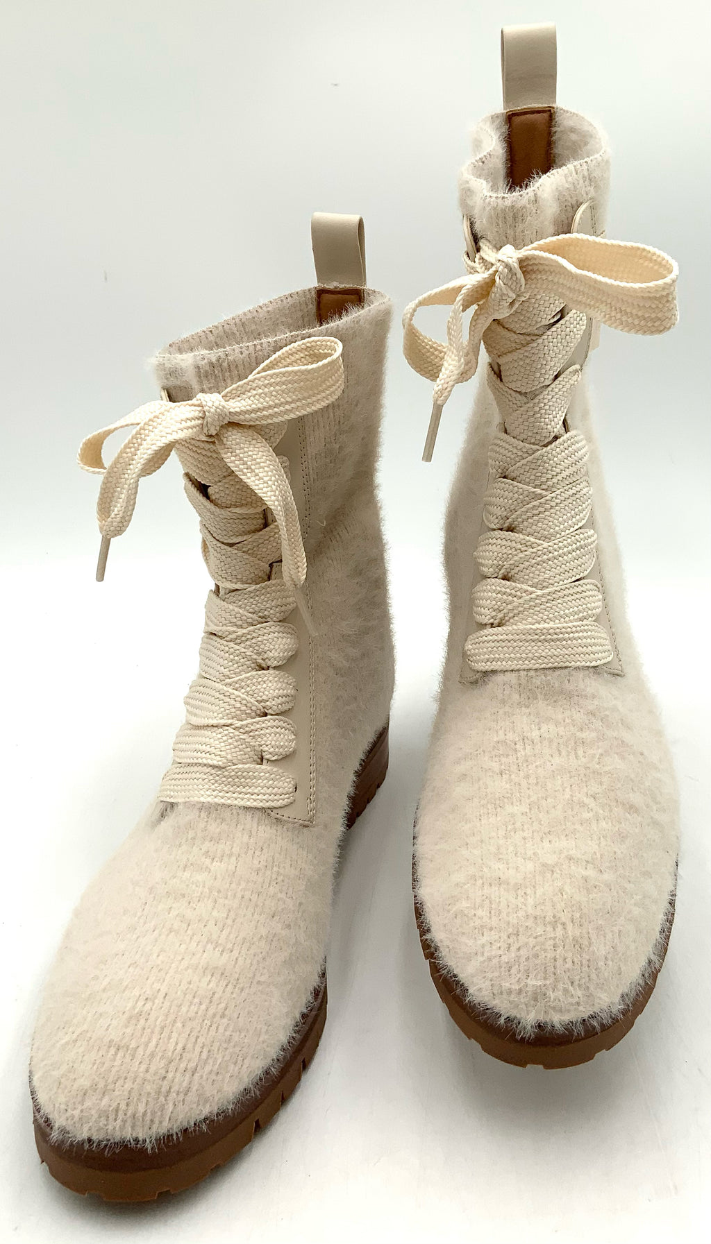 Cream Fuzzy Knit w/Lea Trim "Merigue" Combat Boots 8.5