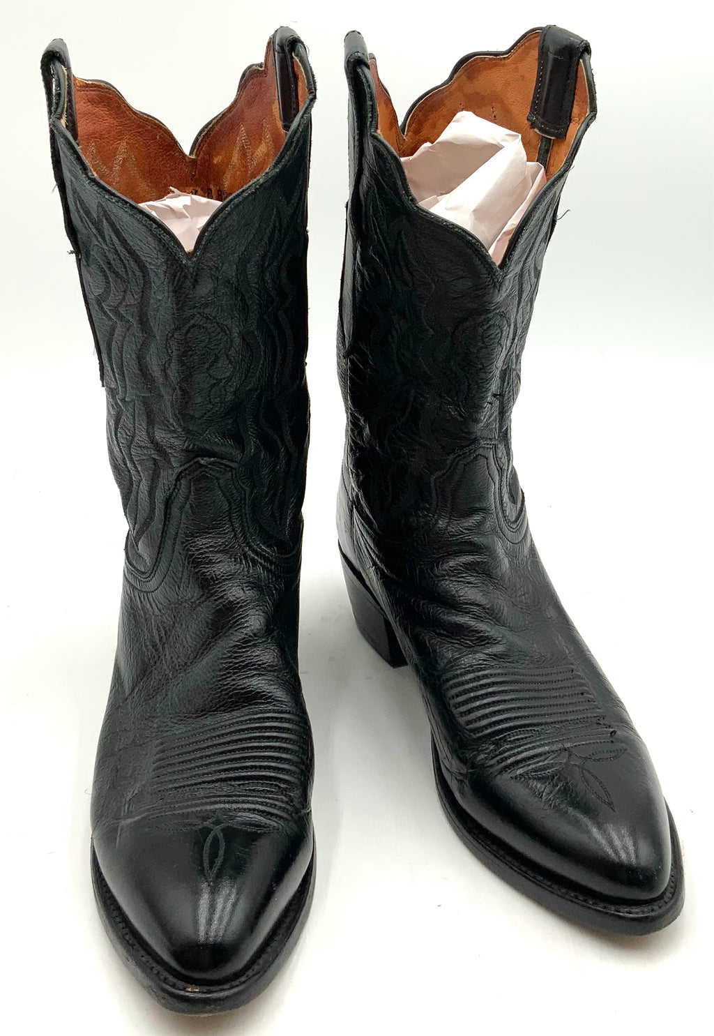 LUCCHESE 2000 Vintage Black Embossed Leather Western Boots 9.5. Style No:T2551.