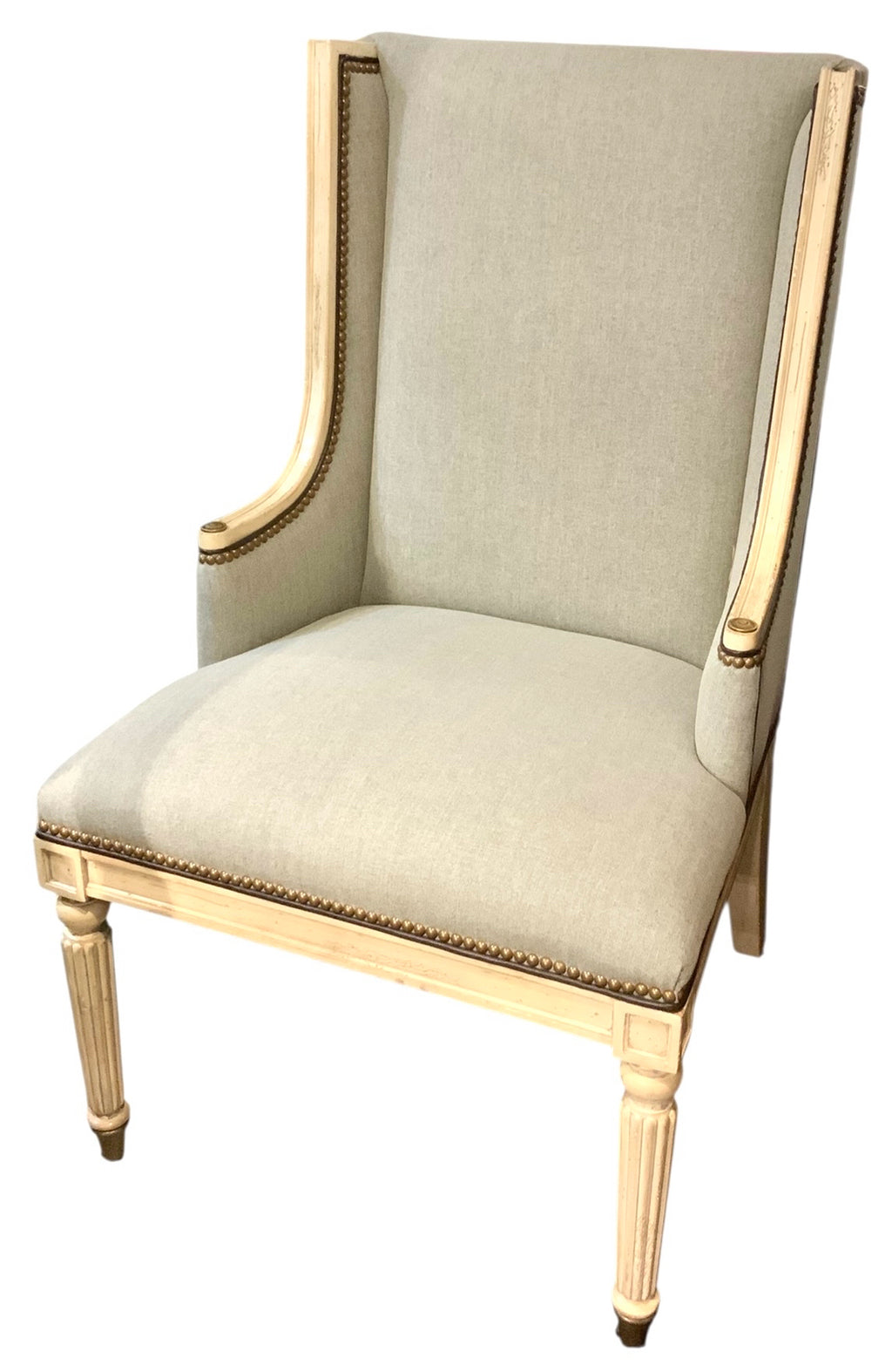 Host Chair, Gray Upholstery, Nailhead Trim, Painted Frame, (1 of 2 Consigned), 25"wx22"x41"h; 19"Seat Height