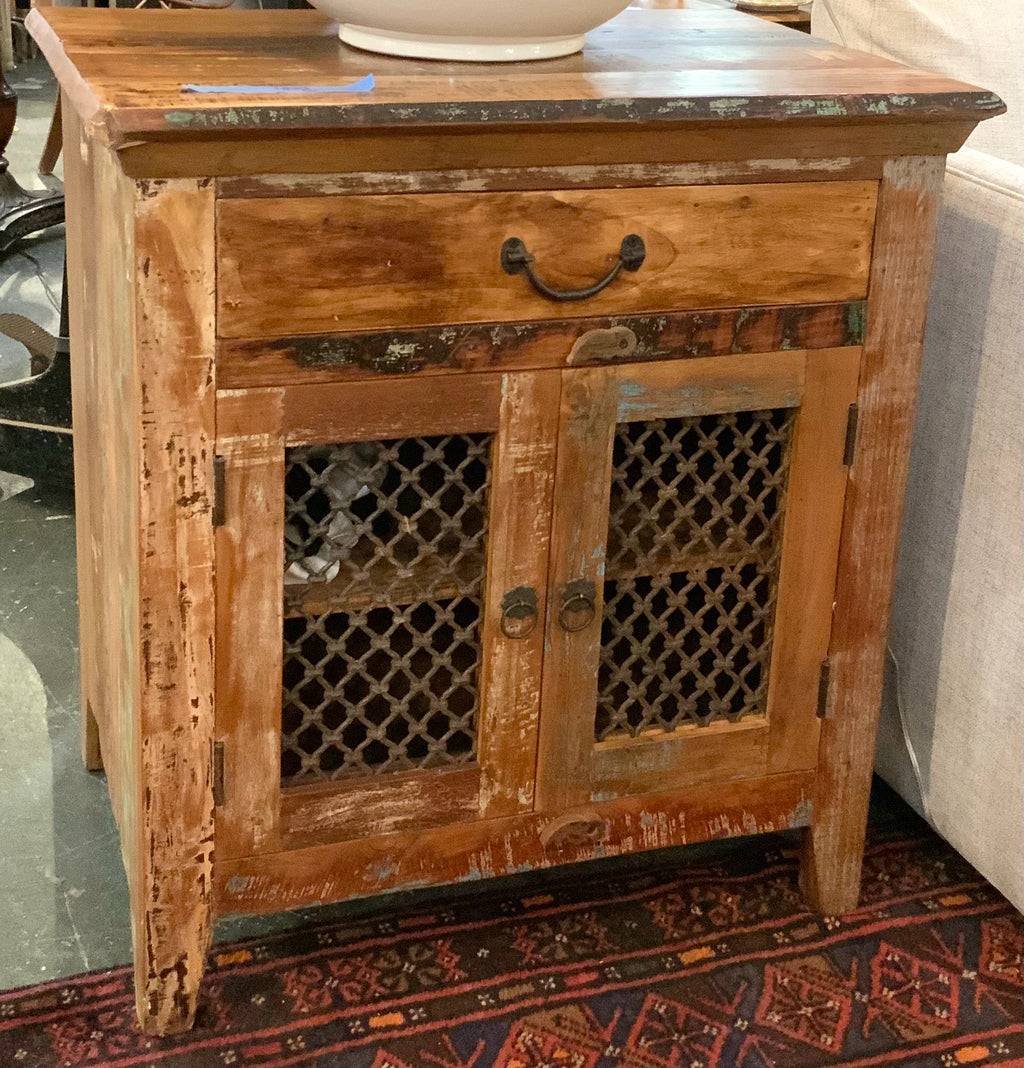 Occasional Table, Wood, Rustic, Metal Door Fronts, One Drawer, Distressed Painted Finish, (1 of 2 Consigned), 27.5"wx19"dx30"h