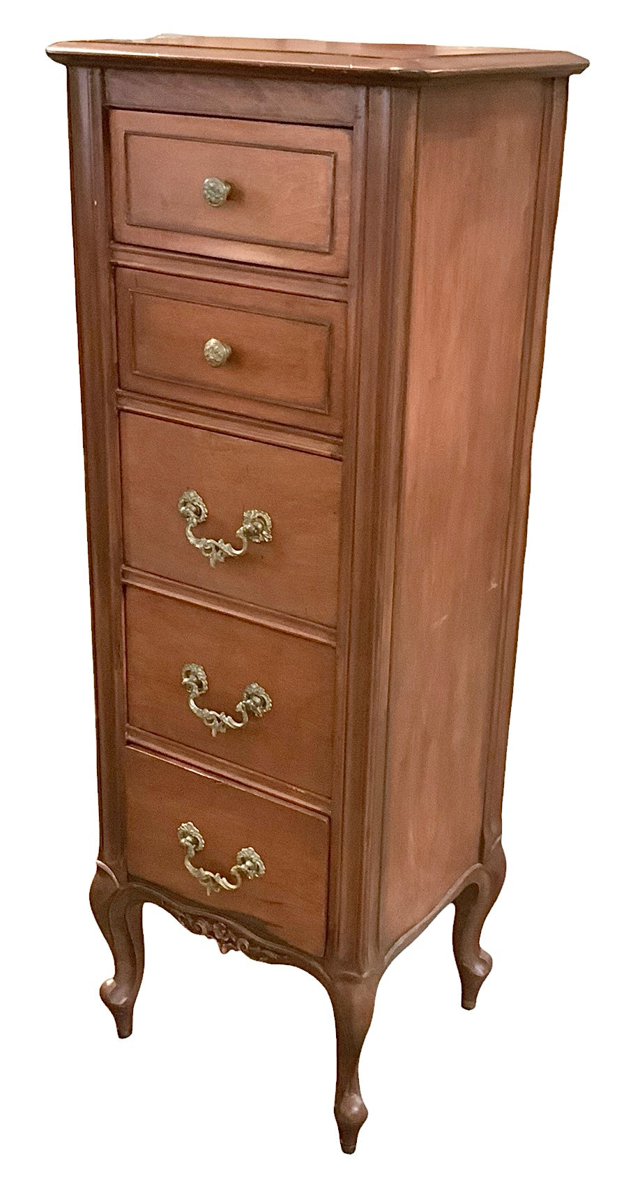 Lingerie Chest, Four Drawer, Vintage, Ornate Brass Hardware, 15"wx13"dx42"h