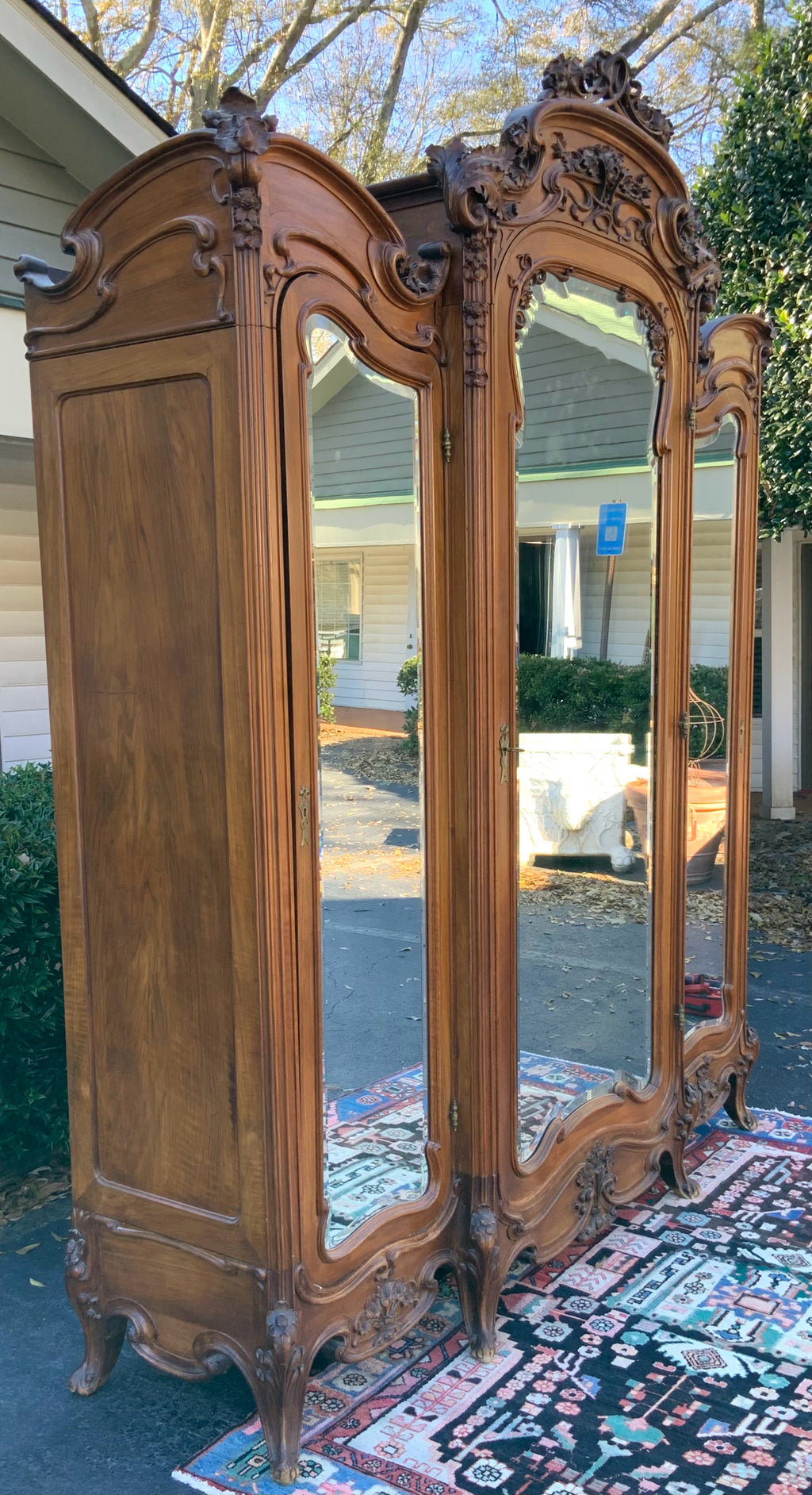 Armoire, Mirrored, Antique, Carved Wood, Three Sections, 89"wx23"dx108"h