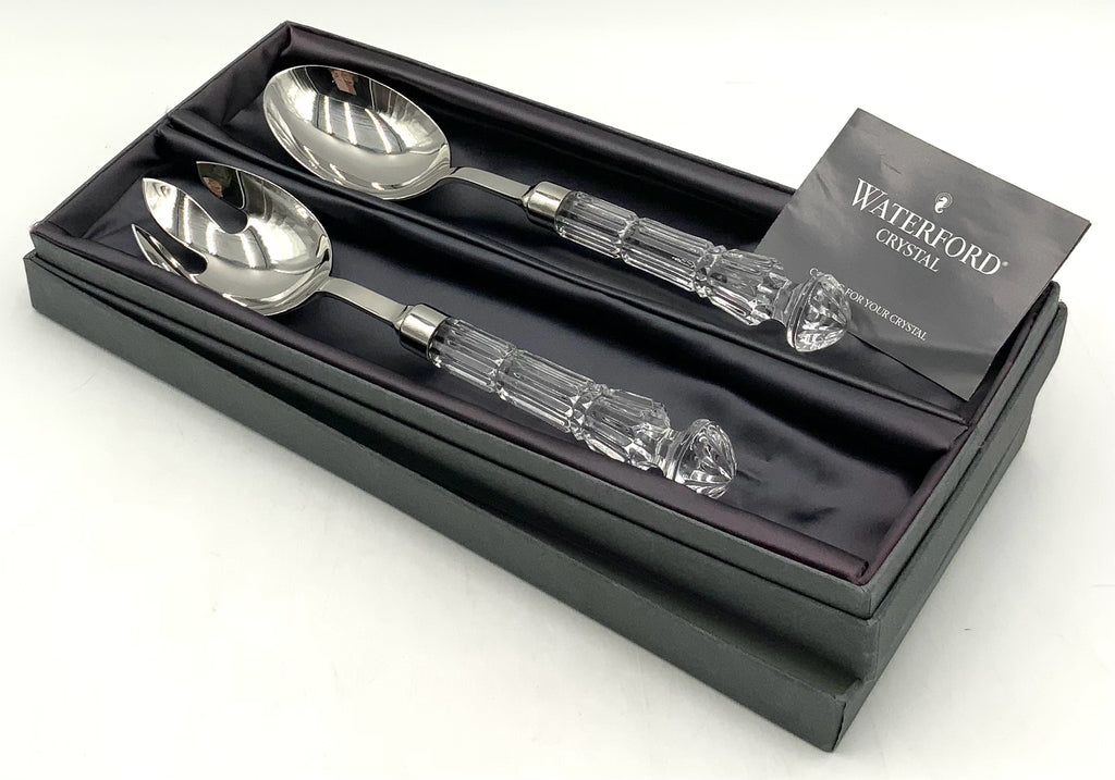 Salad Serving Set, Crystal/Stainless Steel, Original Box, 11"l
