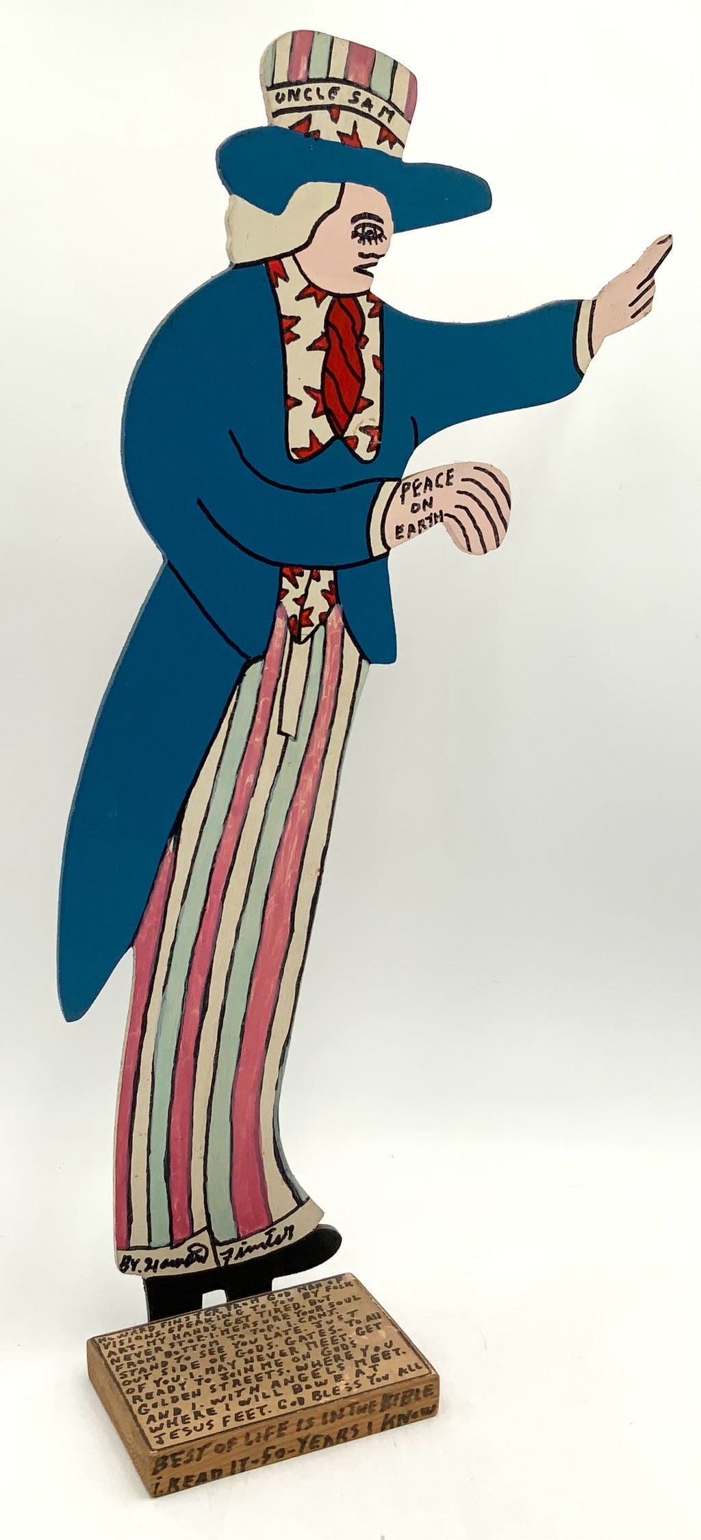 Original 1991 Howard Finster Uncle Sam Wood Sculpture