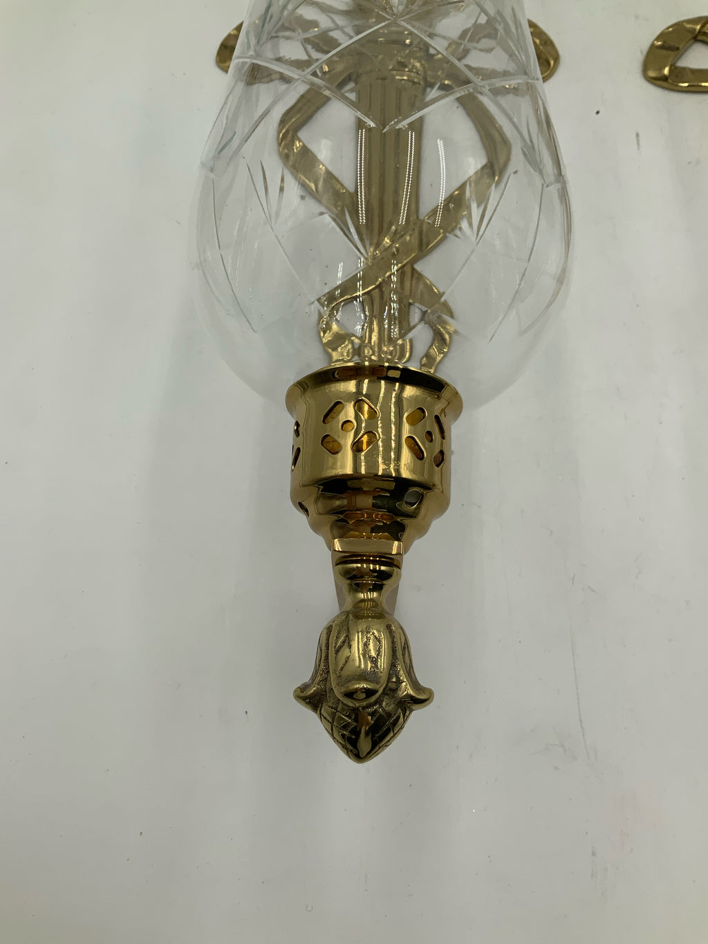 Hurricane Scones, Pair, Brass & Glass, Pineapple Motif, 7"wx20"h