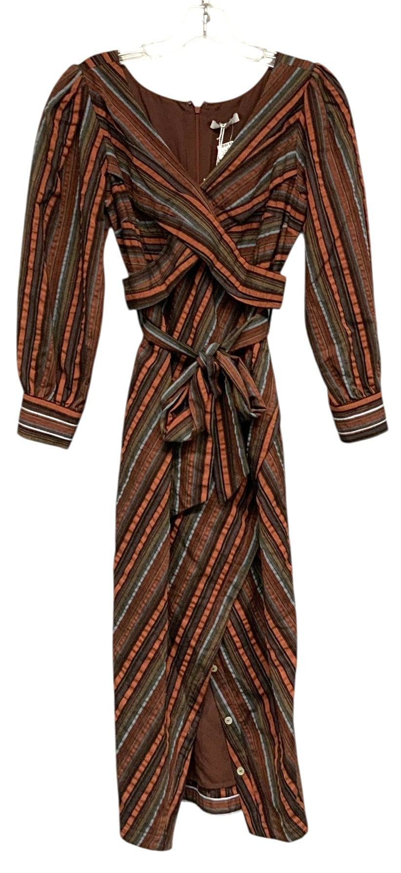 BTFL-LIFE Brown/Rust/Multi Stripe V-Neck Wrap Dress