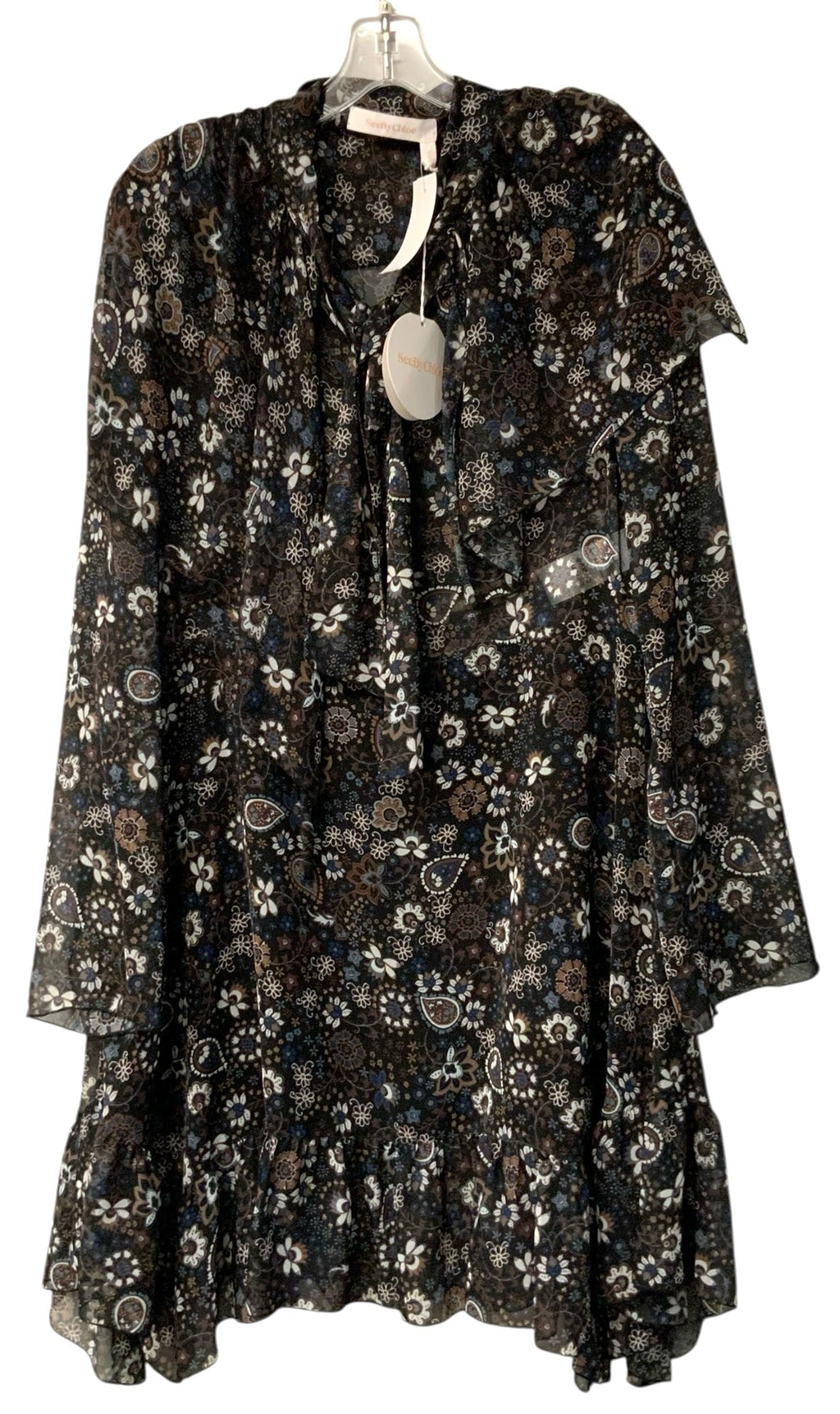 SEE BY CHLOE Black/Tan/White Paisley Sheer Neck Tie Dress
