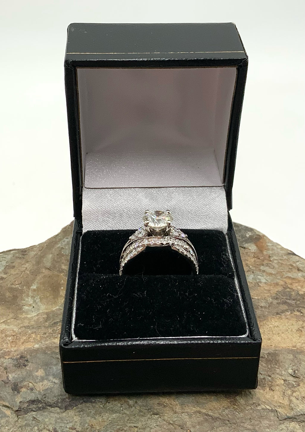 Ring, 14kt Gold, Diamonds. 1 Diamond (7.70x4.60mm rnd Brilliant cut) 1.69 cts; 74 Diamonds (1.75-1.00mm rnd ea) 1.00 ct.t.w. Total Diamond ct. wt: 2.69 cts. Size 7. Marked 14Kt F.D. 4.8g.