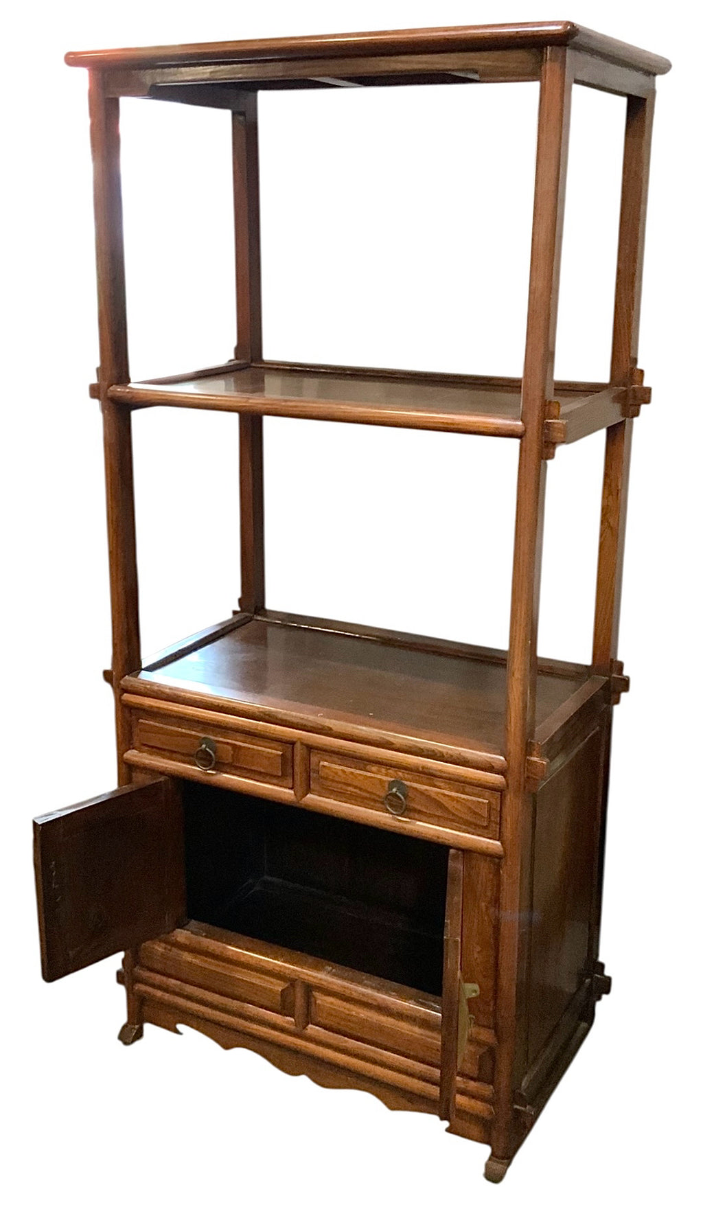 Etatgere, Asian, Mid Century, Three Shelves, Cabinet Below, (1 of 2 Consigned), 28"wx15"dx58.5"h