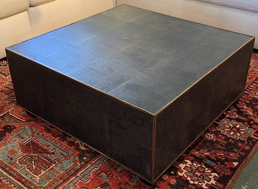 Coffee Table, Faux Shagreen, Cube Design, Black/ Metal Trim, 36"sqx16"h