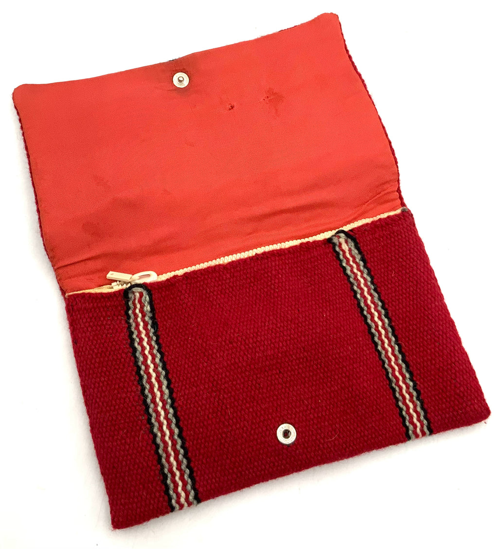 GANSCRAFT Vintage Native American raspberry Chimayo Wool Clutch w/Coin Purse
