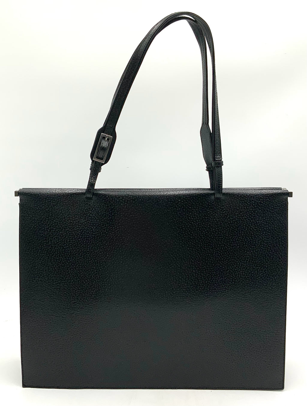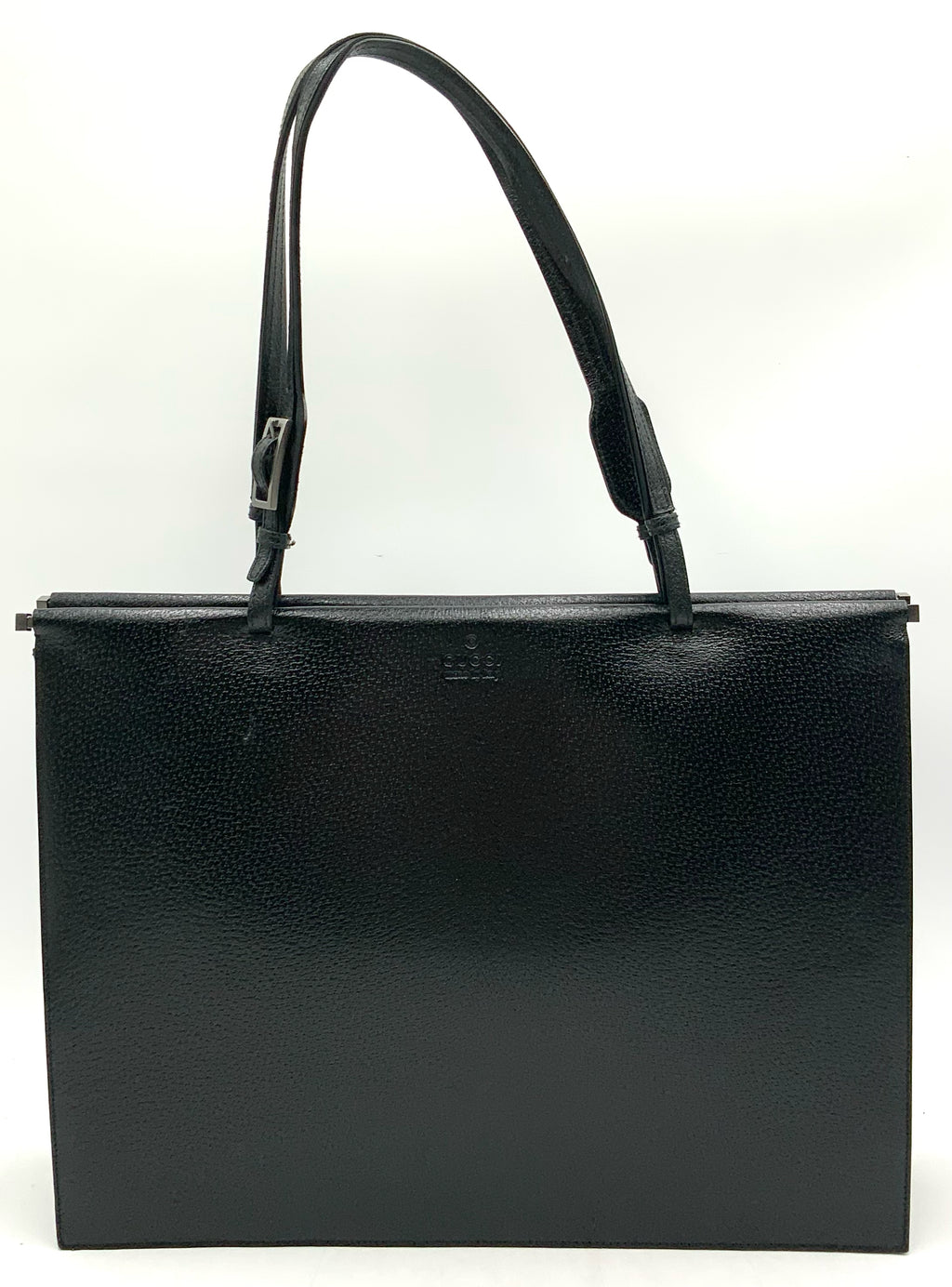 GUCCI Vintage Black Grained Leather Structured Tote Bag