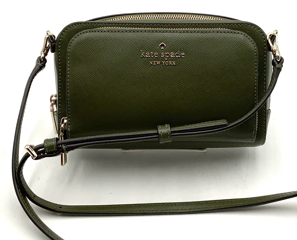 KATE SPADE Olive Saffiano Leather Dbl Zip Stacie Crossbody Bag