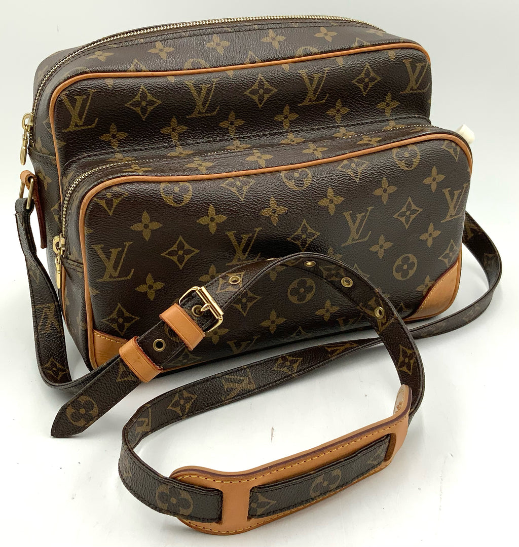 LOUIS VUITTON Monogram Canvas Cowhile Leather Trim & Lining Nile GM Crossbody Bag. Date Code:0037. 11"l x 5.5"w x 8"h.
