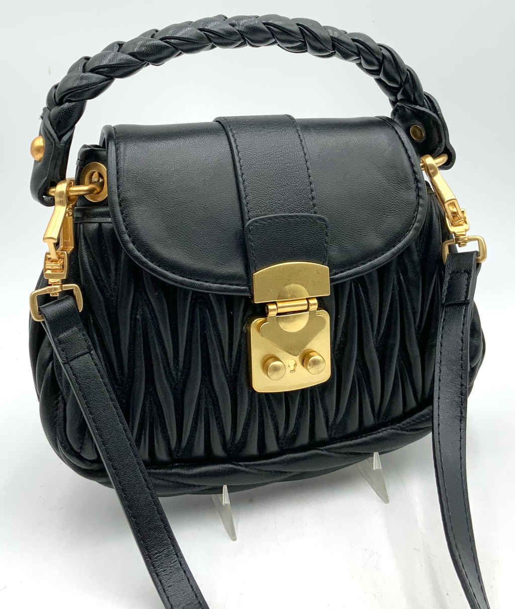 TIFFANY & FRED Black Quilted Leather w/Braided Handle Crossbody