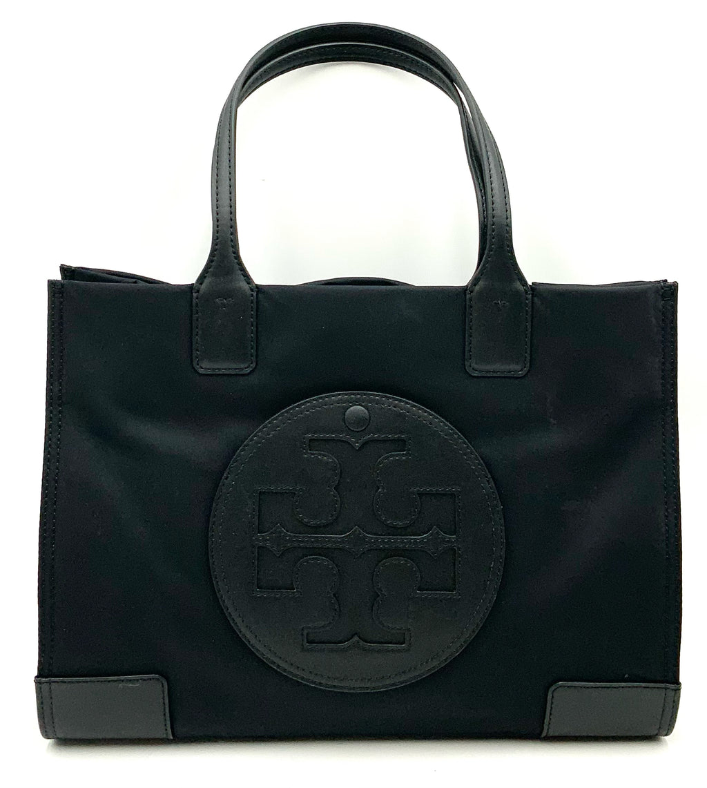 TORY BURCH Black Nylon Faux Leather Trim Logo Ella Tote Bag