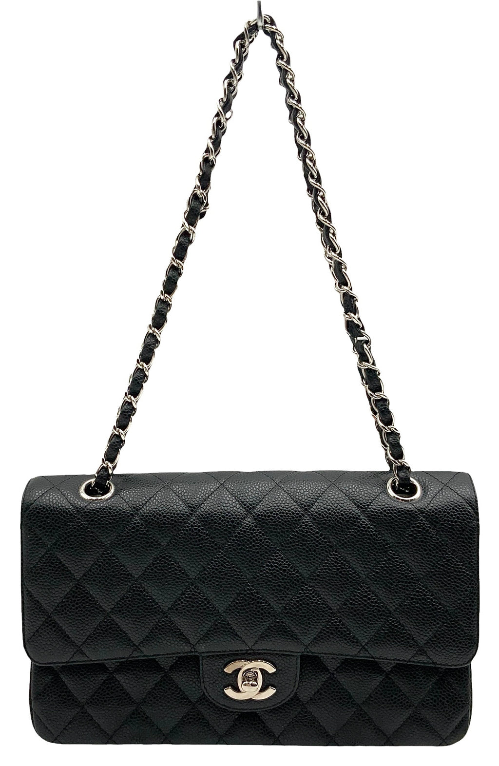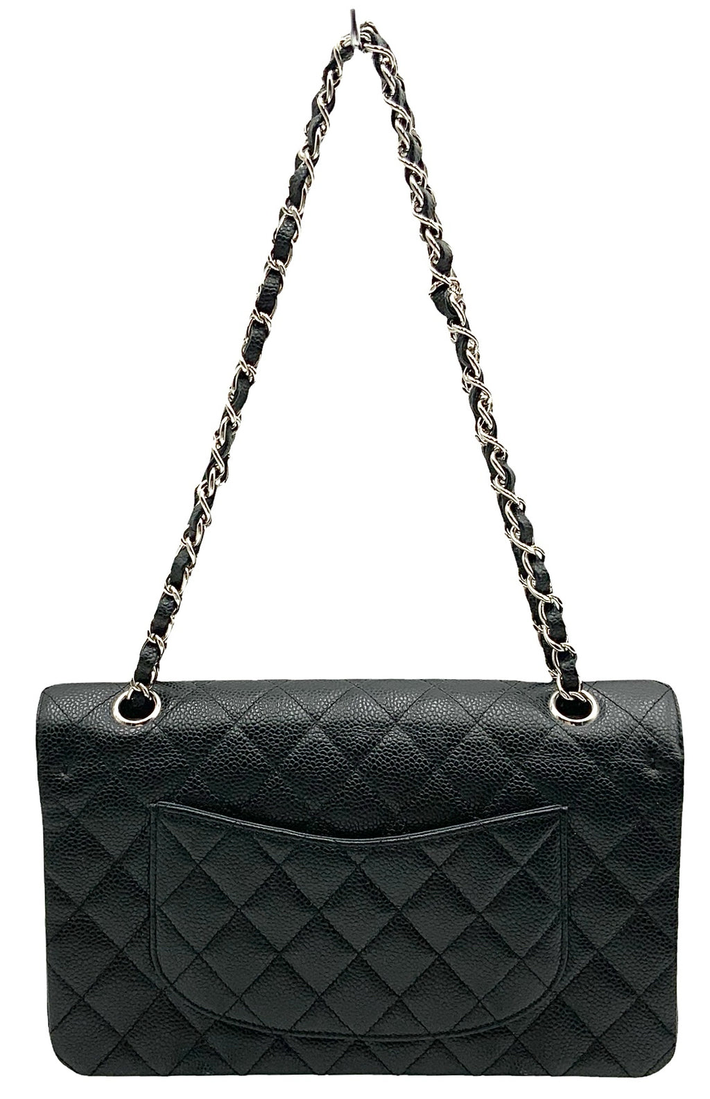 CHANEL Black Caviar Quilted Leather Chain Strap Turnlock Double Flap Bag