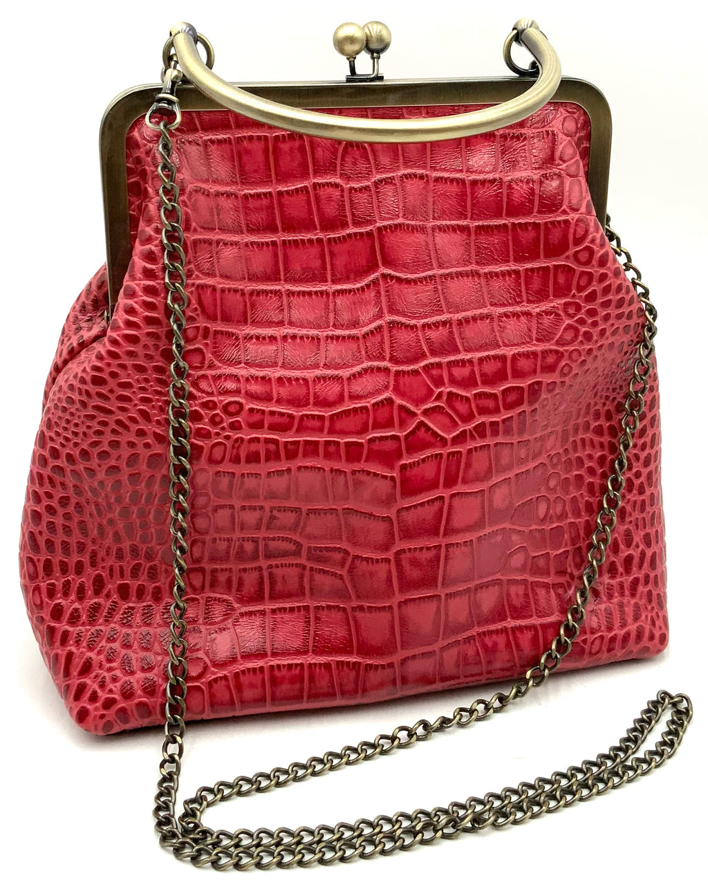 PATRICIA NASH Pink Croc Embossed Novella Frame Bag