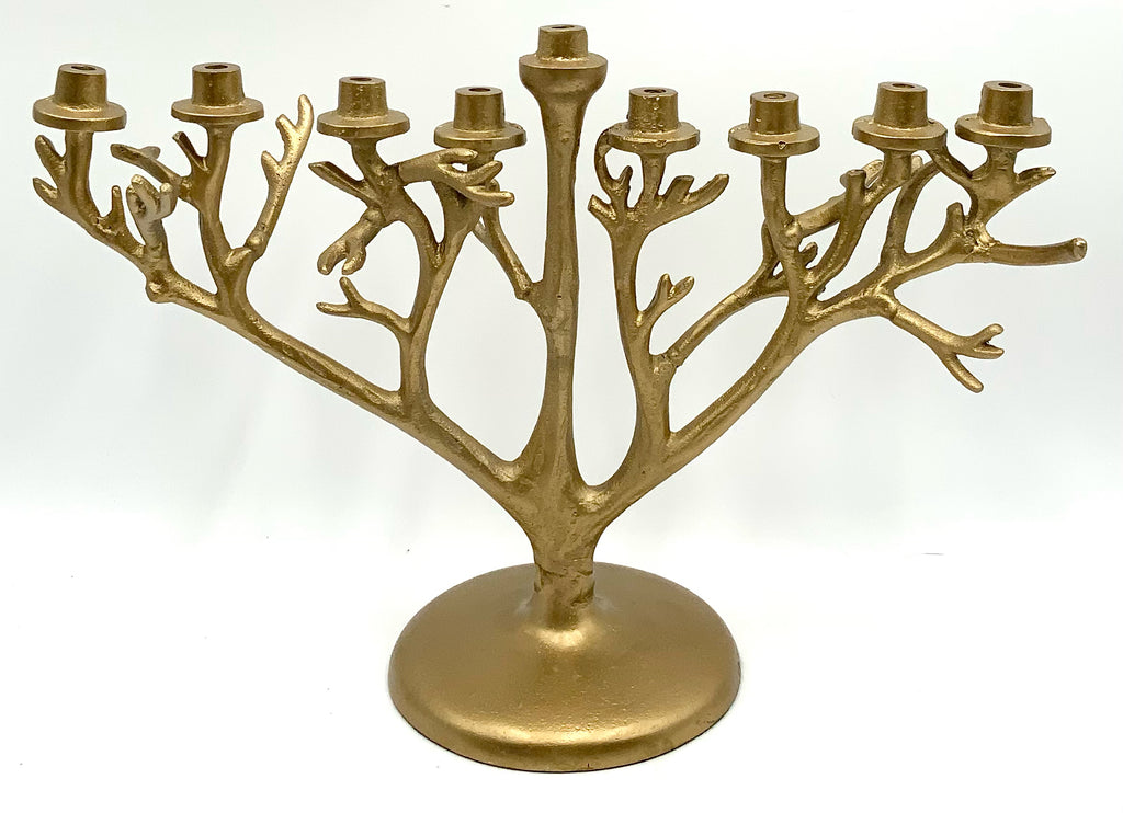 Menorah, Brushed Gold Metal, (1 of 2 Consigned), 17"wx12"h