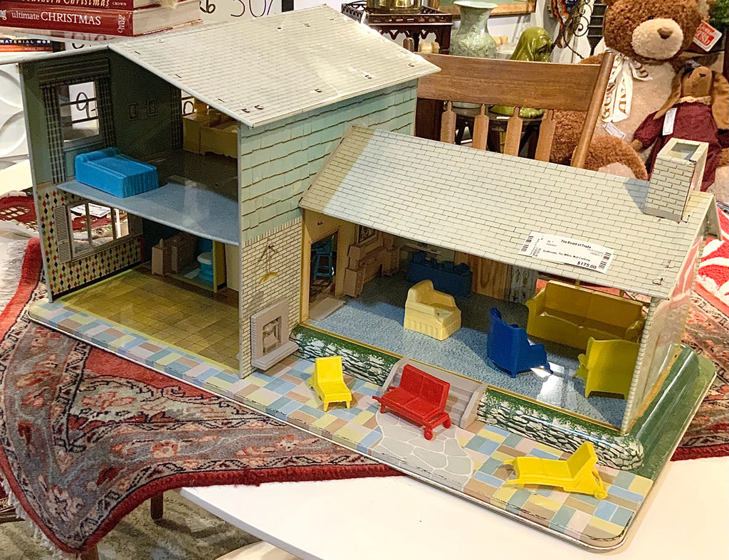 Dollhouse, Tin, MArx, Mid Century, Includes Furniture, 29"Wx16"dx14"h