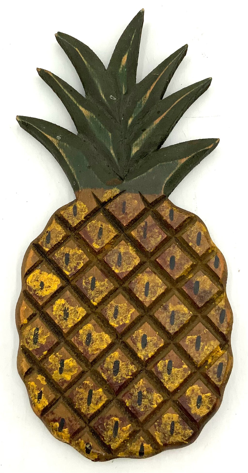 Pineapple, Folk Art, Wood, Signed, 1981, 12"h