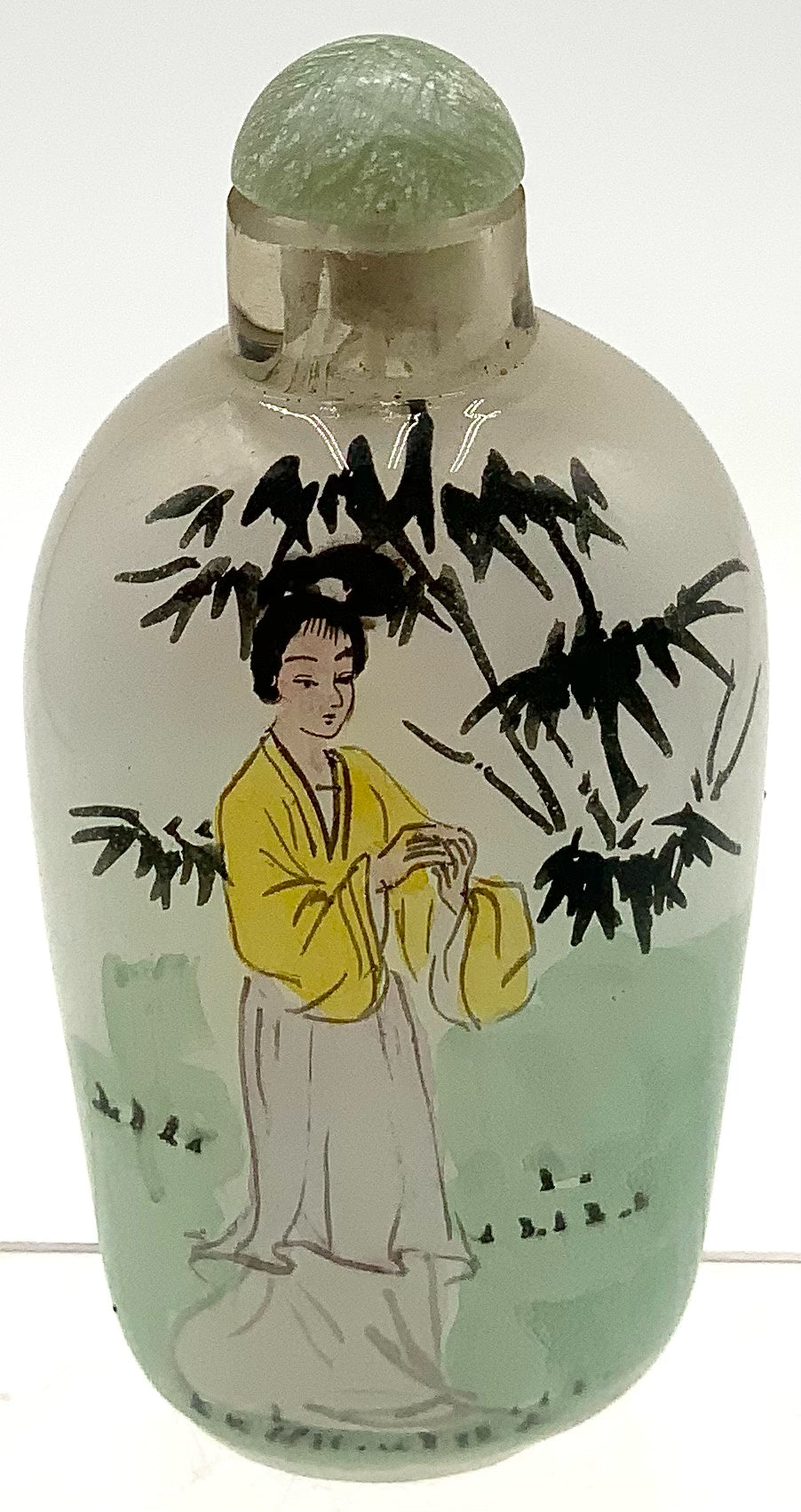 Snuff Bottle, Reverse Painted, Asian, Glass, 3.5"h