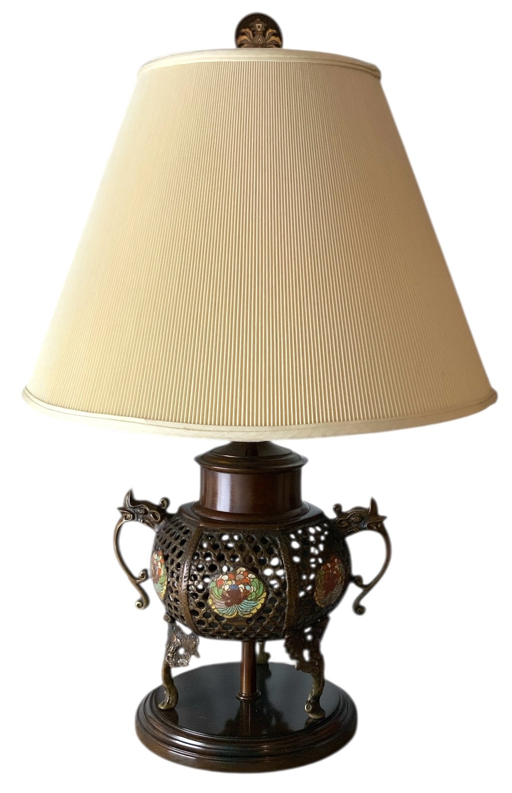 Lamp, Bronze, Champleve Accents, Pleated Shade, 19"rndx31"h