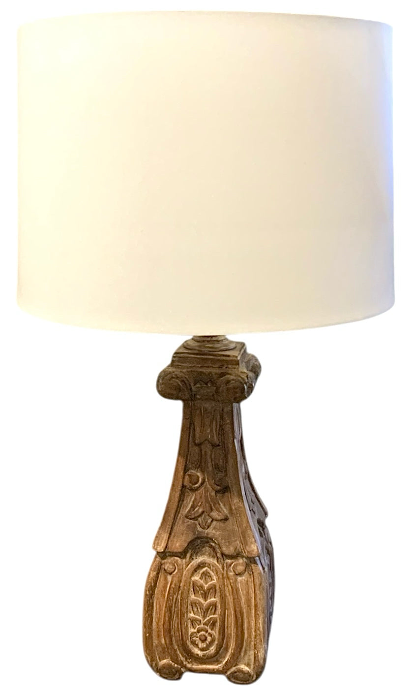 Lamp, Wood, Carved, Drum Shade, 15"rndx31"h