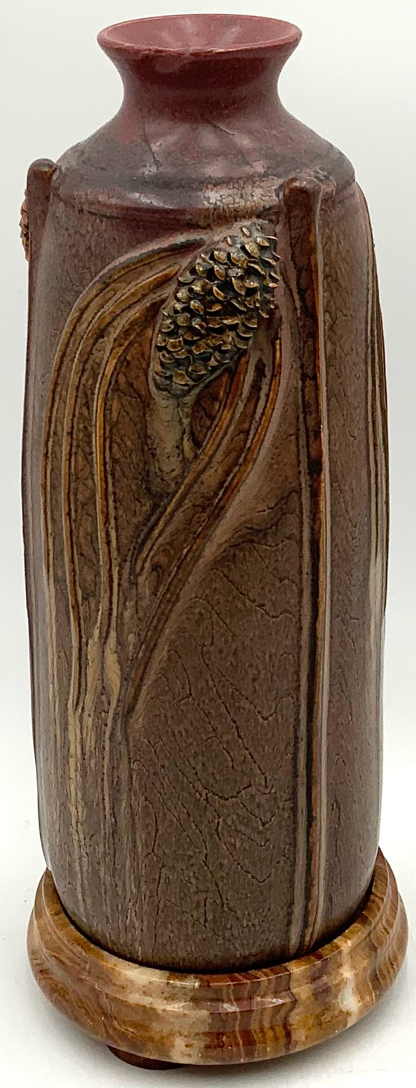 Vase, Pine Cone Motif, Pottery, Includes Stone Stand, 12"h