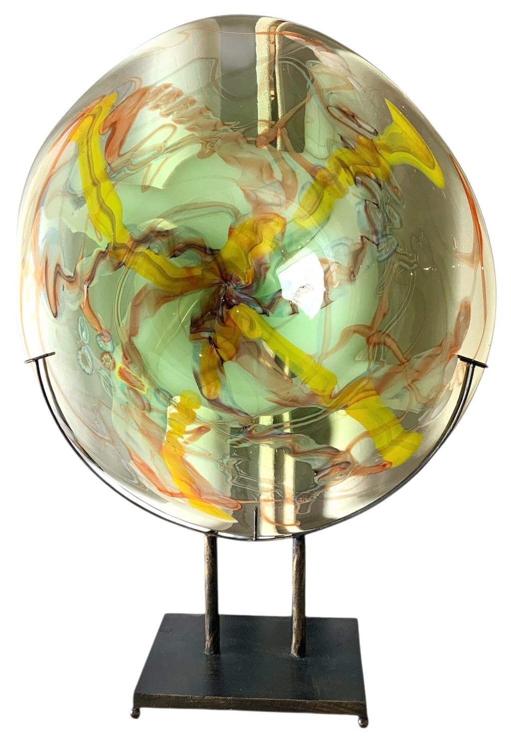 Bowl, Art Glass, Round, Metal Stand, 24"wx33"h