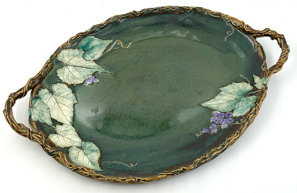 Platter, Pottery, Oval, Grape Motif, Handmade, 21"wx14"h