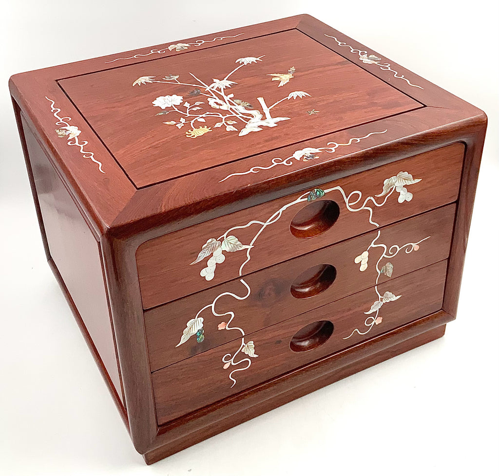 Tansu Chest, Korean, Wood, Mother of Pearl Inlay, Three Drawers, 15.5"wx13.5"dx12"h