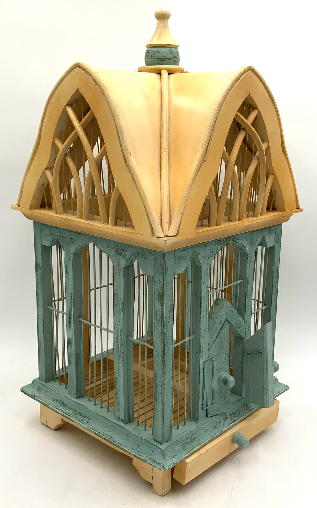 Painted Birdcage with Gothic Style Roof