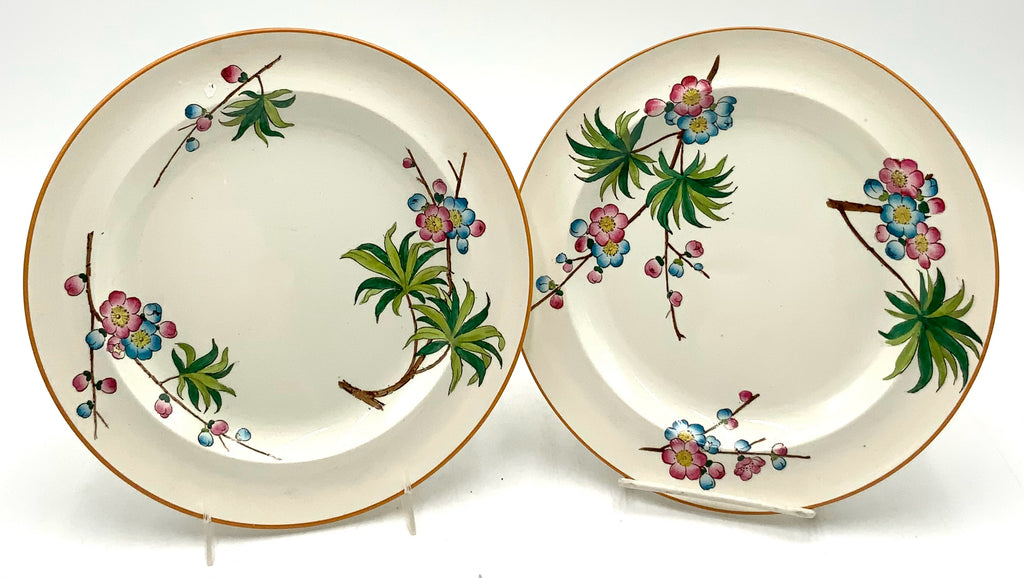 Creamware Plates, Pair, Blossom Motif, 8"rnd