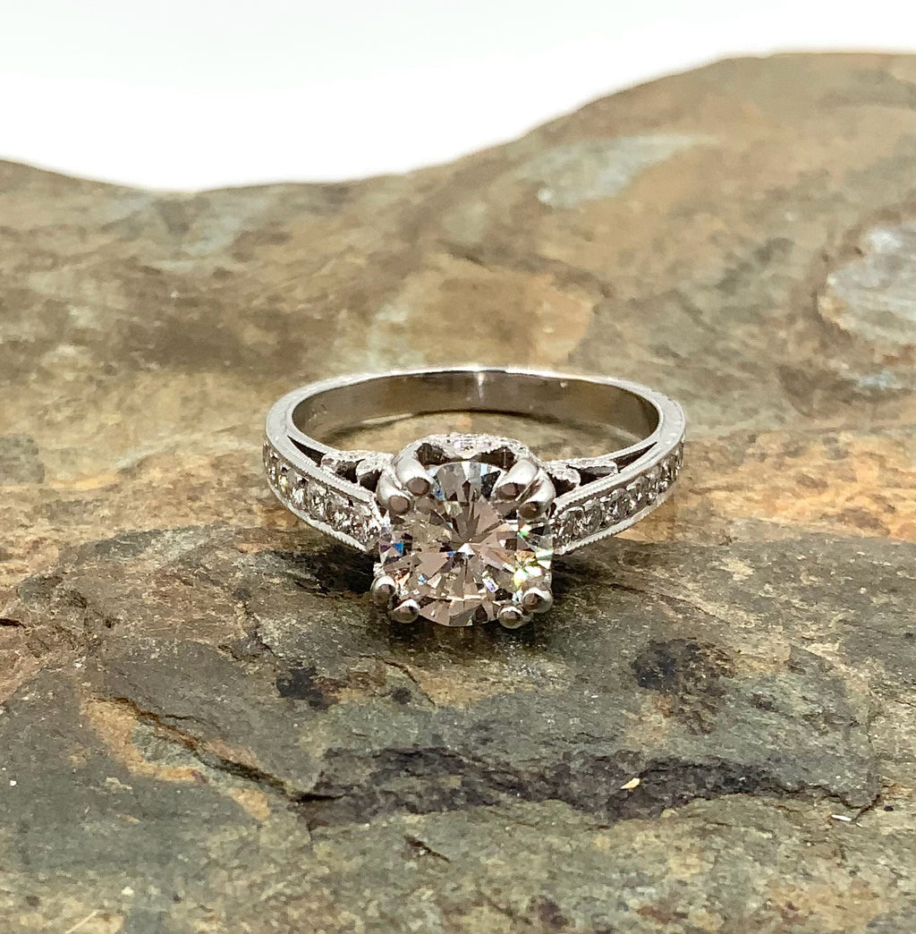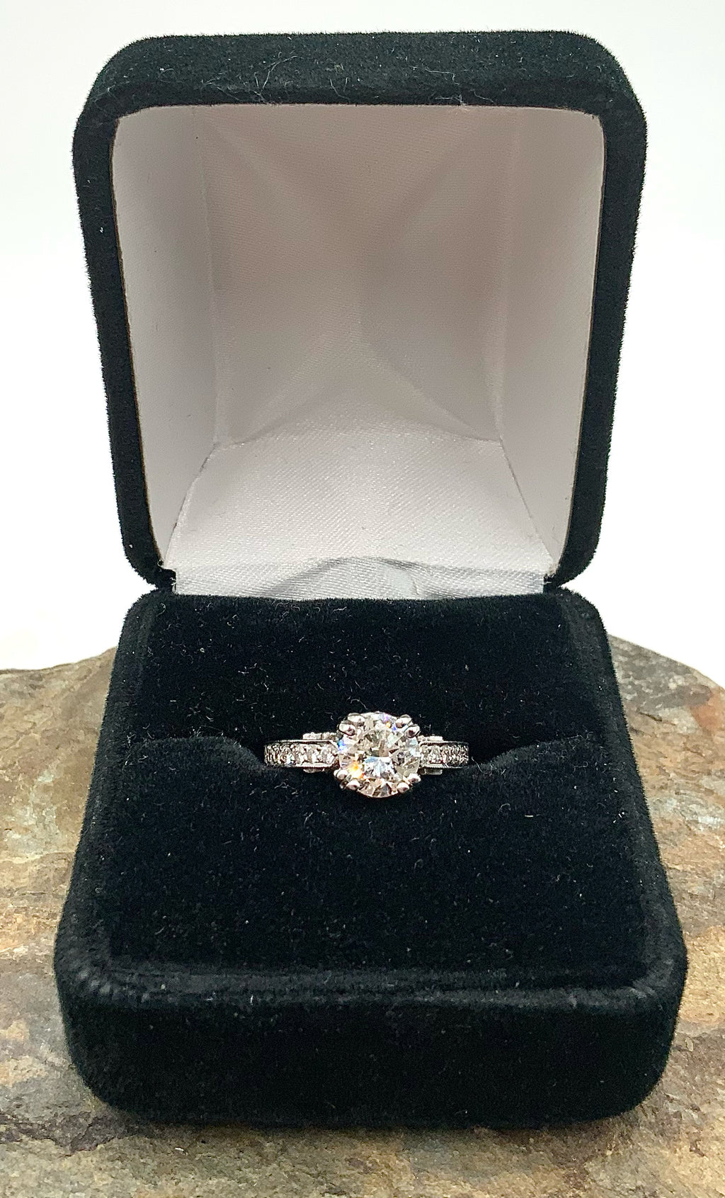 Ring, 18kt Gold, Diamond. 1 Diamond (6.80x4.00mm European cut) 1.50 cts; 34 Diamonds (2.00x1.00mm rnd ea) .25 ct.t.w. Total Diamond wt: 1.75 cts. Size 6. Marked 18K. 3.8g. SHOWN BY APPOINTMENT ONLY.