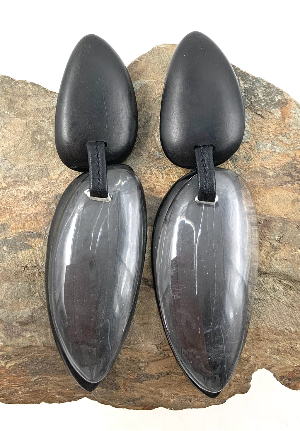 Earrings, Wood, Acrylic, Teardrop, Clip.