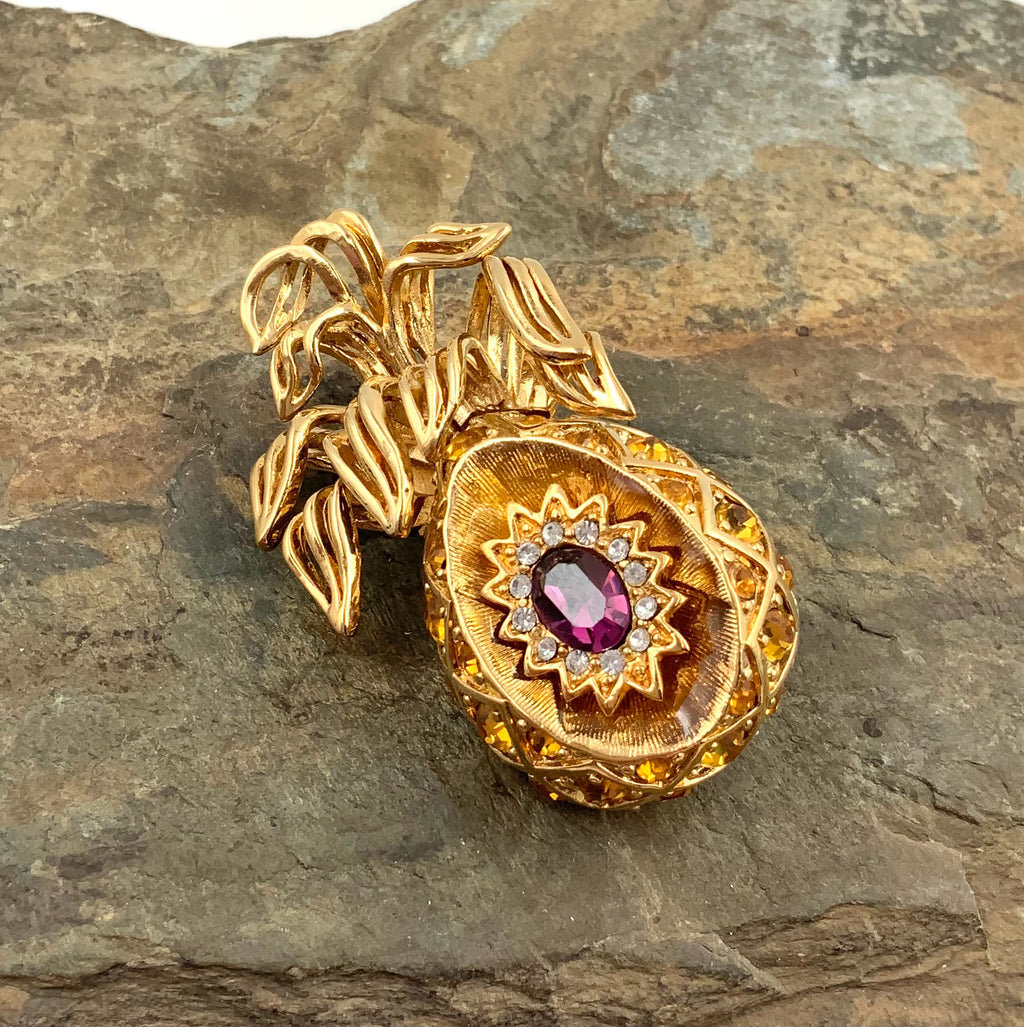 ST. JOHN Goldtone Metal & Crystals Pineapple Brooch